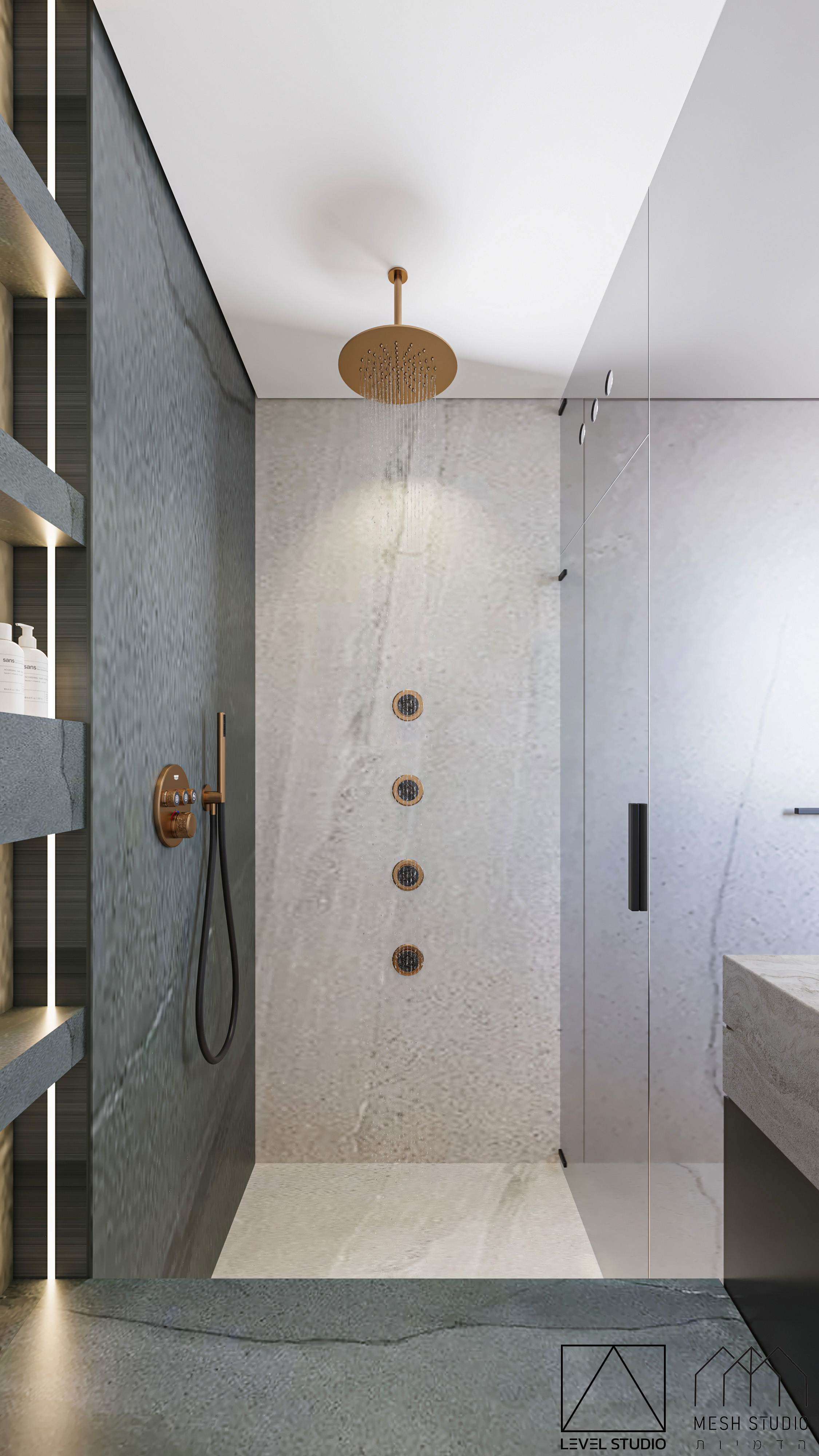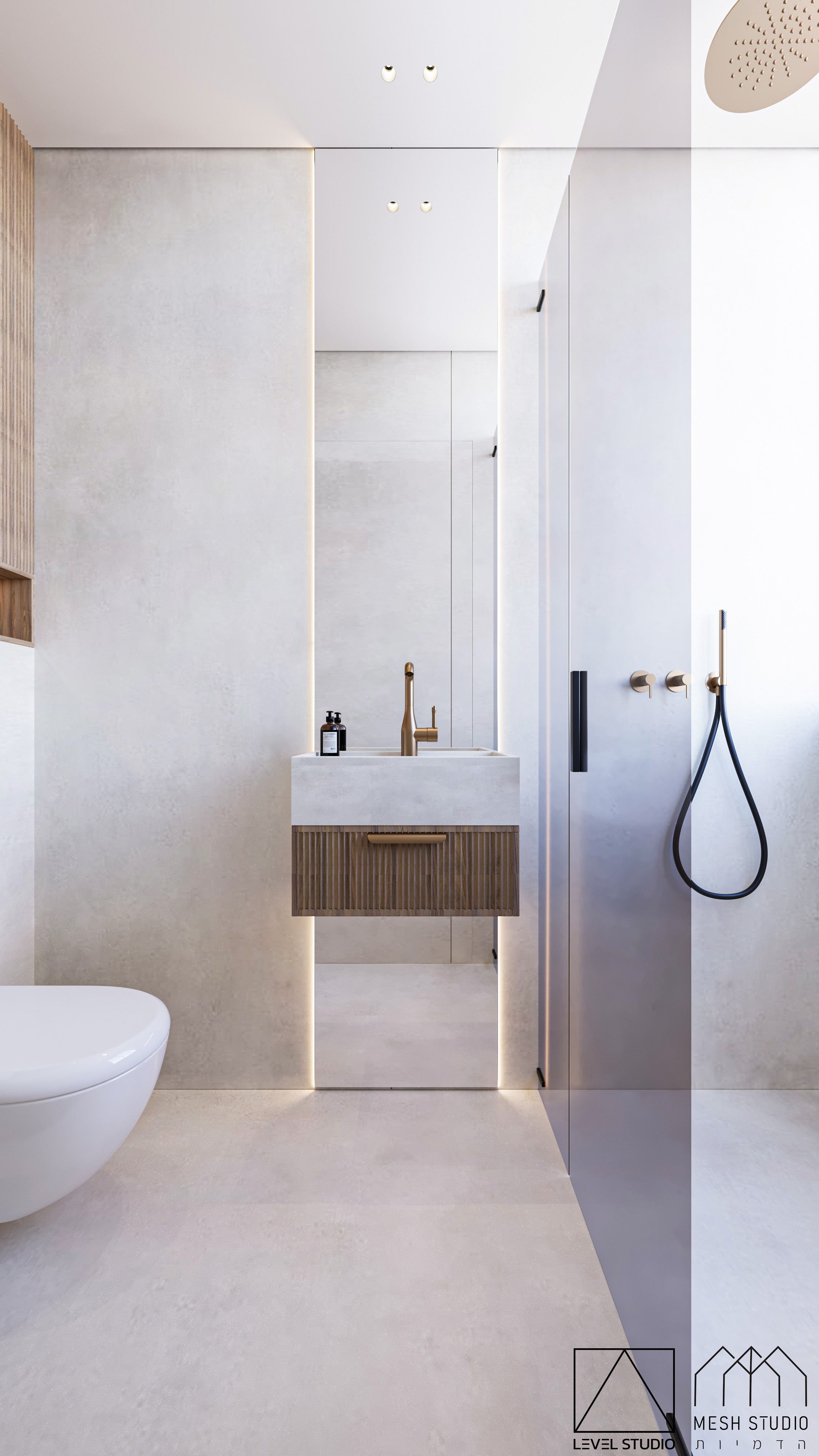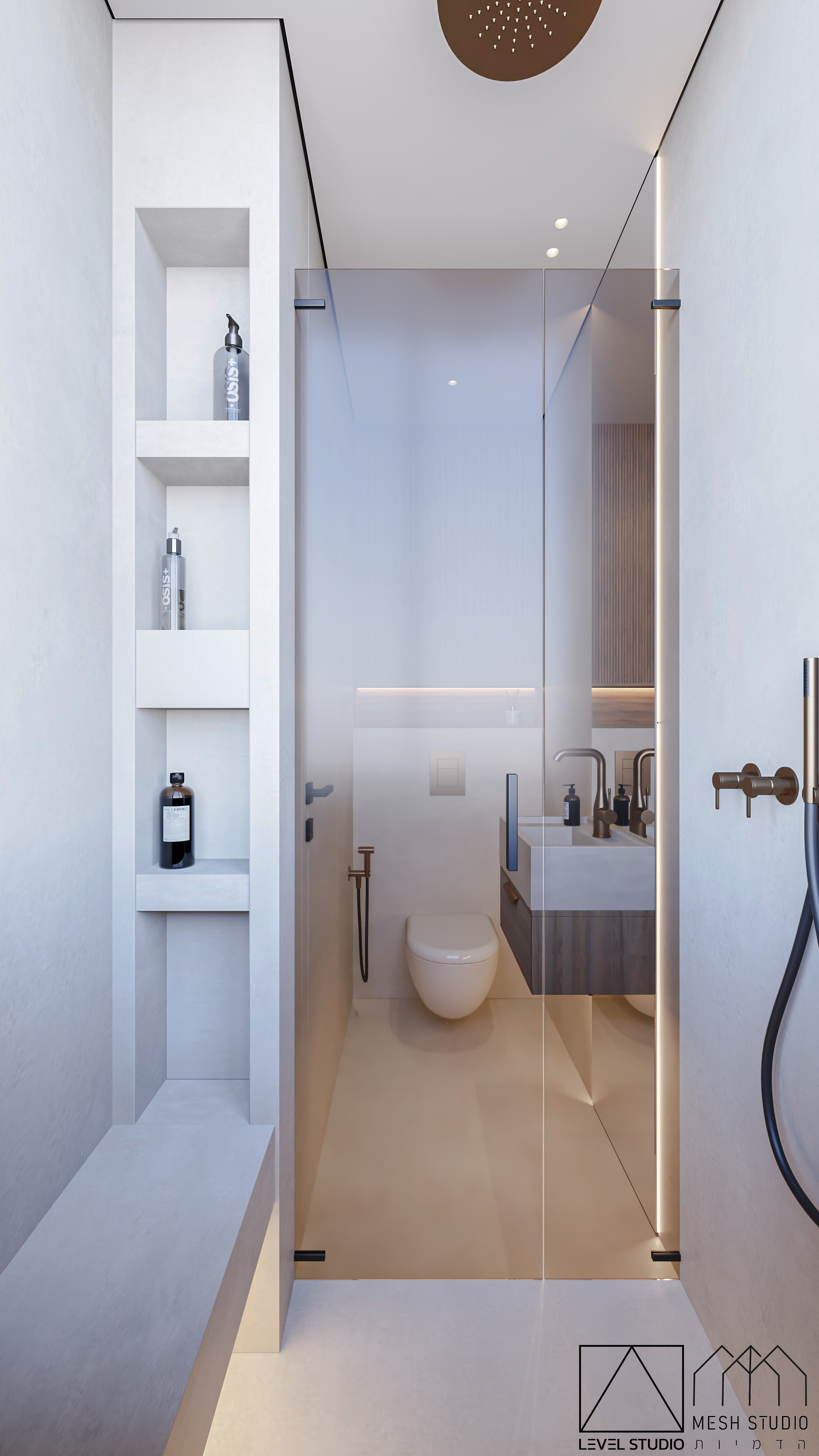 הדמיות ל-4 חדרי רחצה בעיצוב מודרני בפנטהאוז ברמת גן.