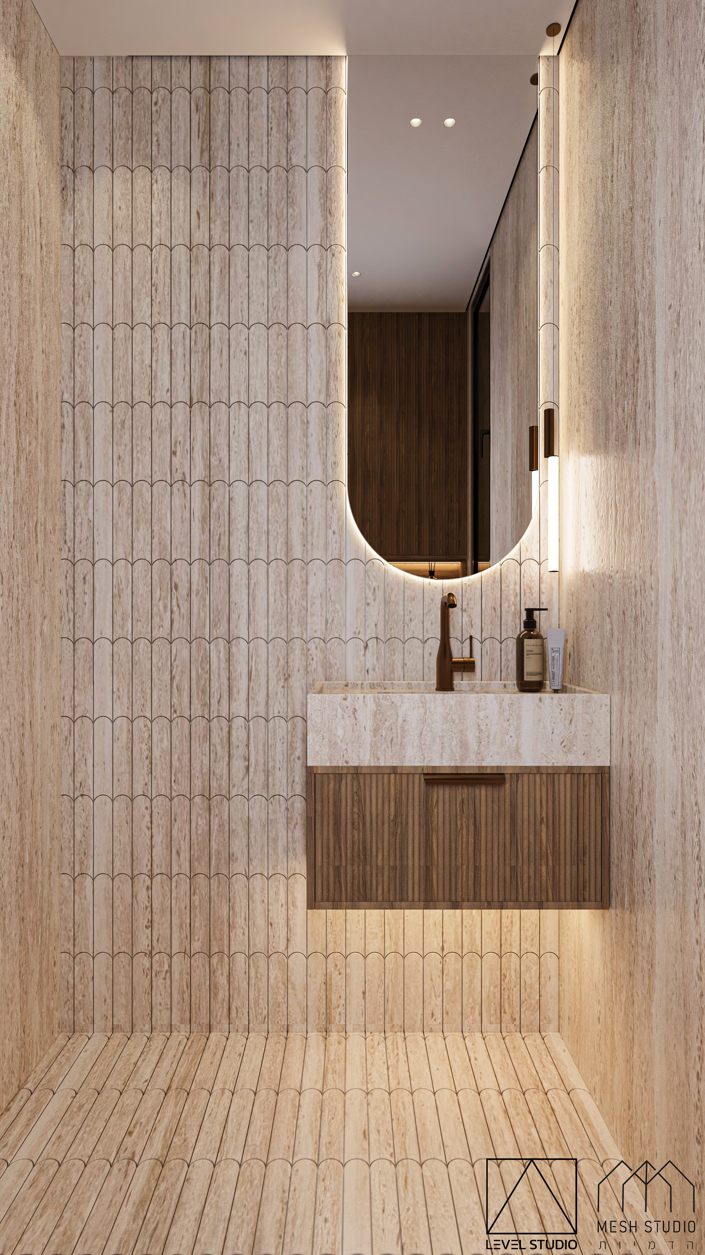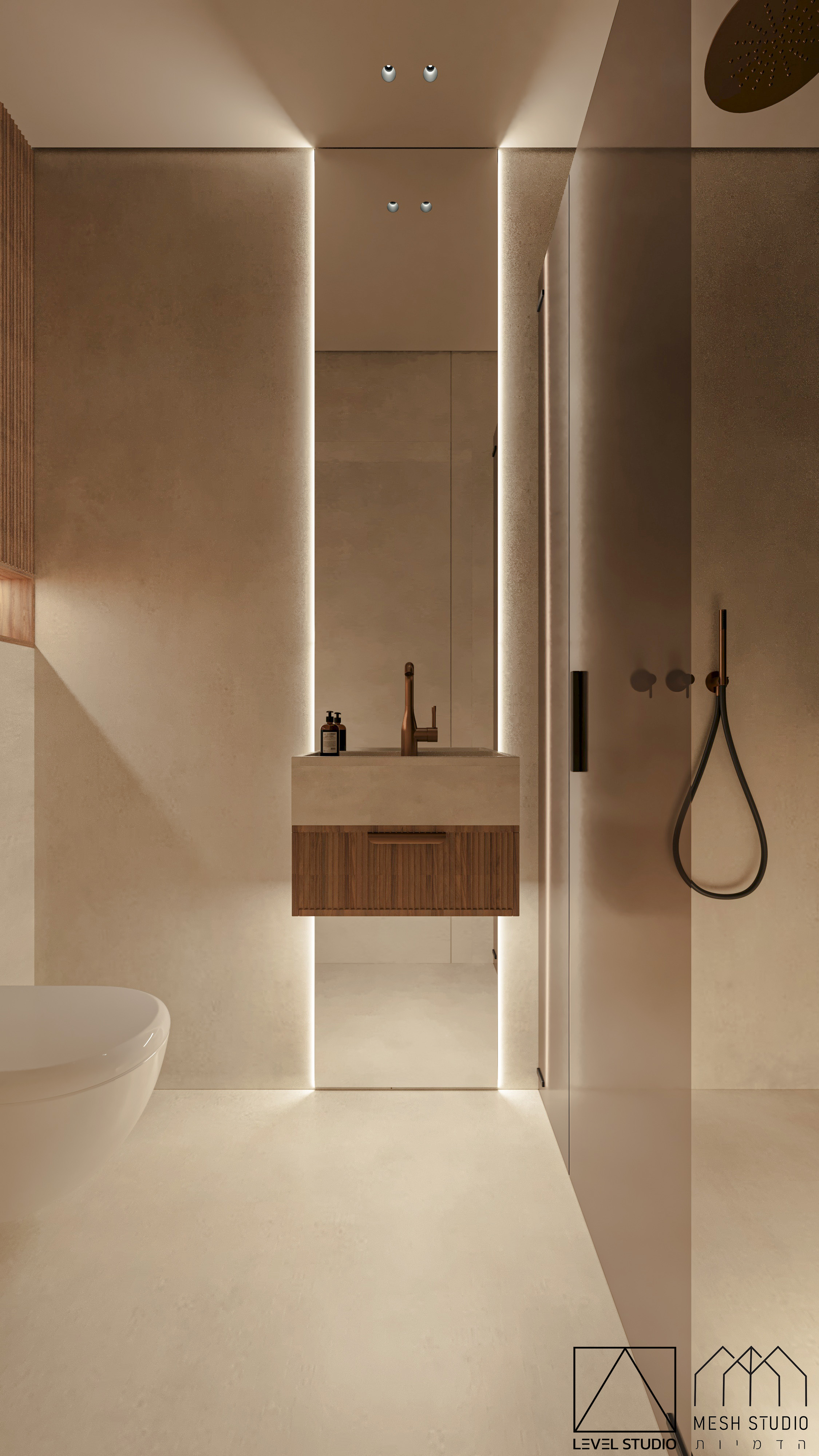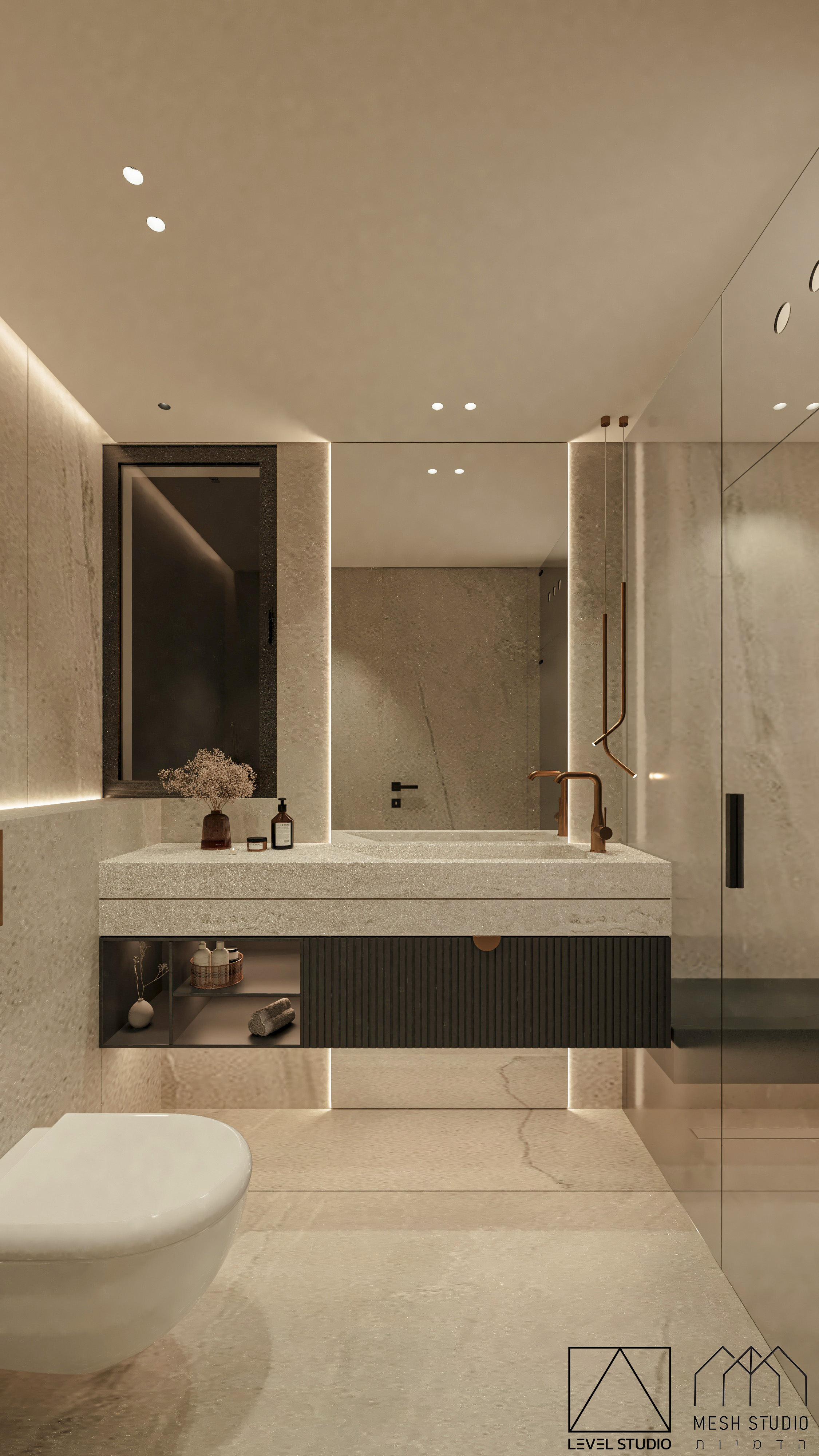 הדמיות ל-4 חדרי רחצה בעיצוב מודרני בפנטהאוז ברמת גן.