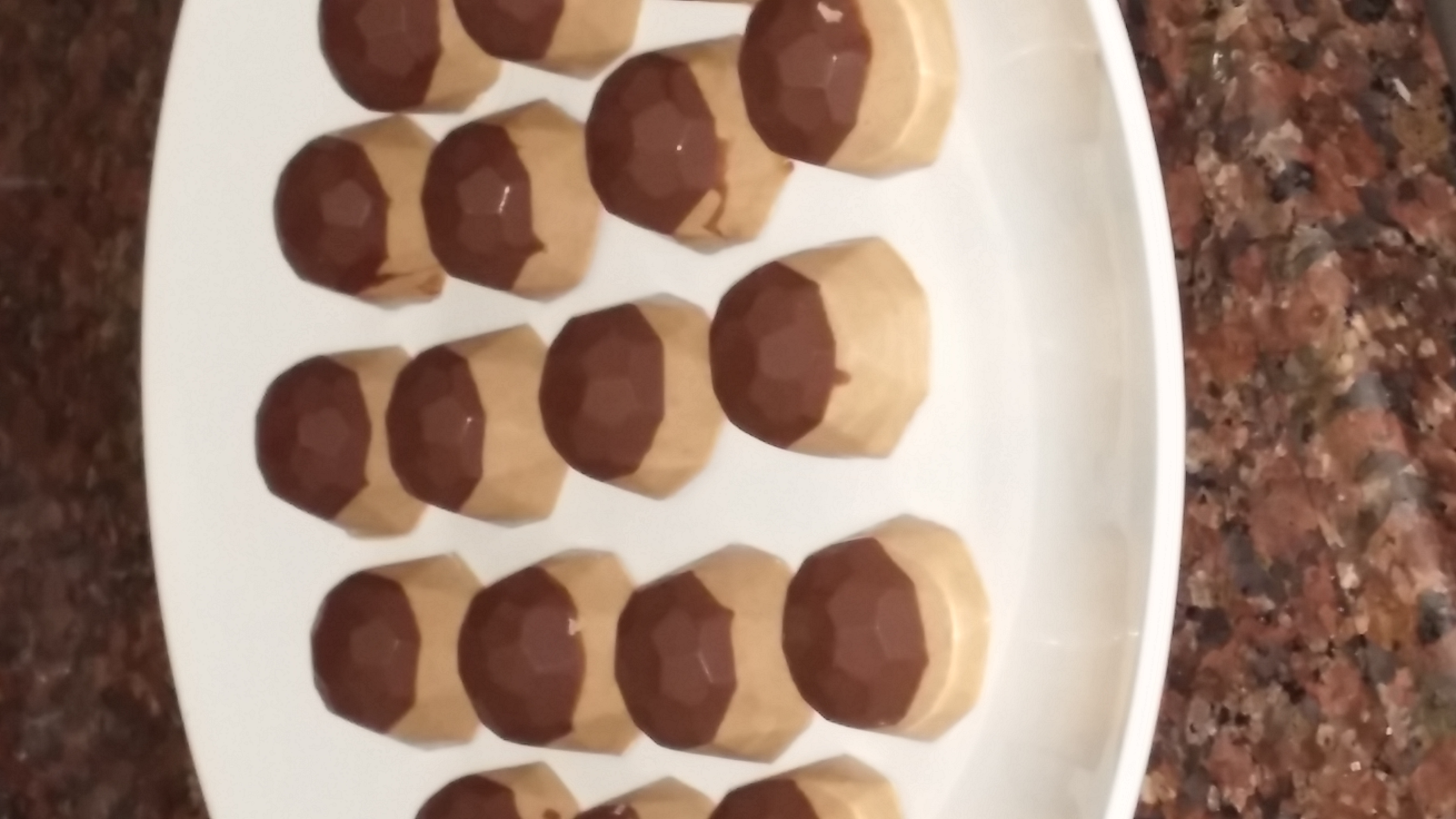 נגמר לי השוקולד הלבן ובנגלה השניה שמתי שוקולד כהה ויצא שני גוונים של שוקולד.