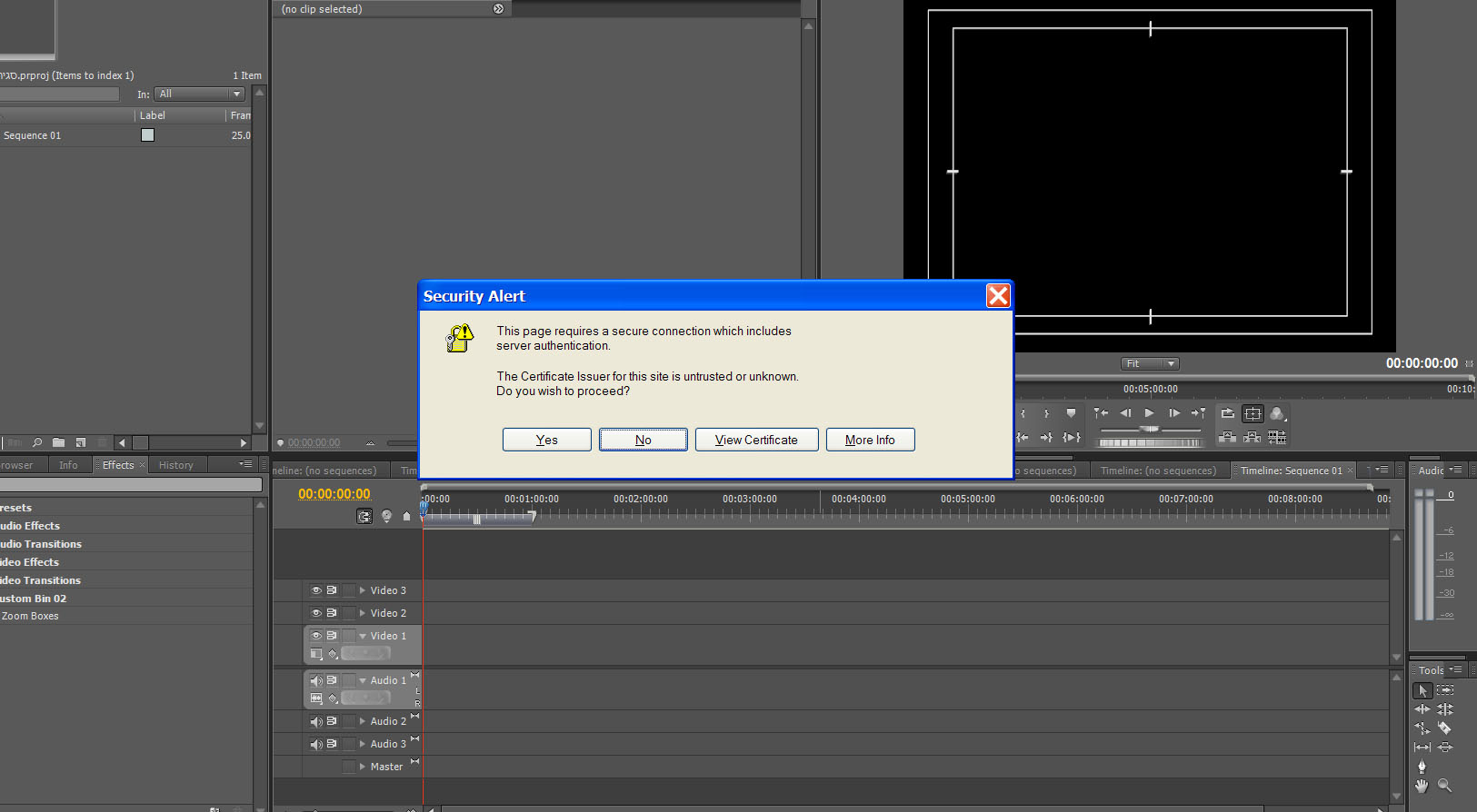 כשאני פותח את פרימייר מופיע לי ההודעה הזאת