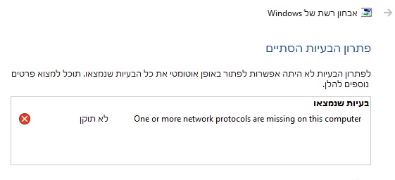 לעיתים תכופות לא מצליח להתחבר לרשת. משתמשים בנטסטיק. בפיתרון בעיות מראה את ההודעה הבאה: