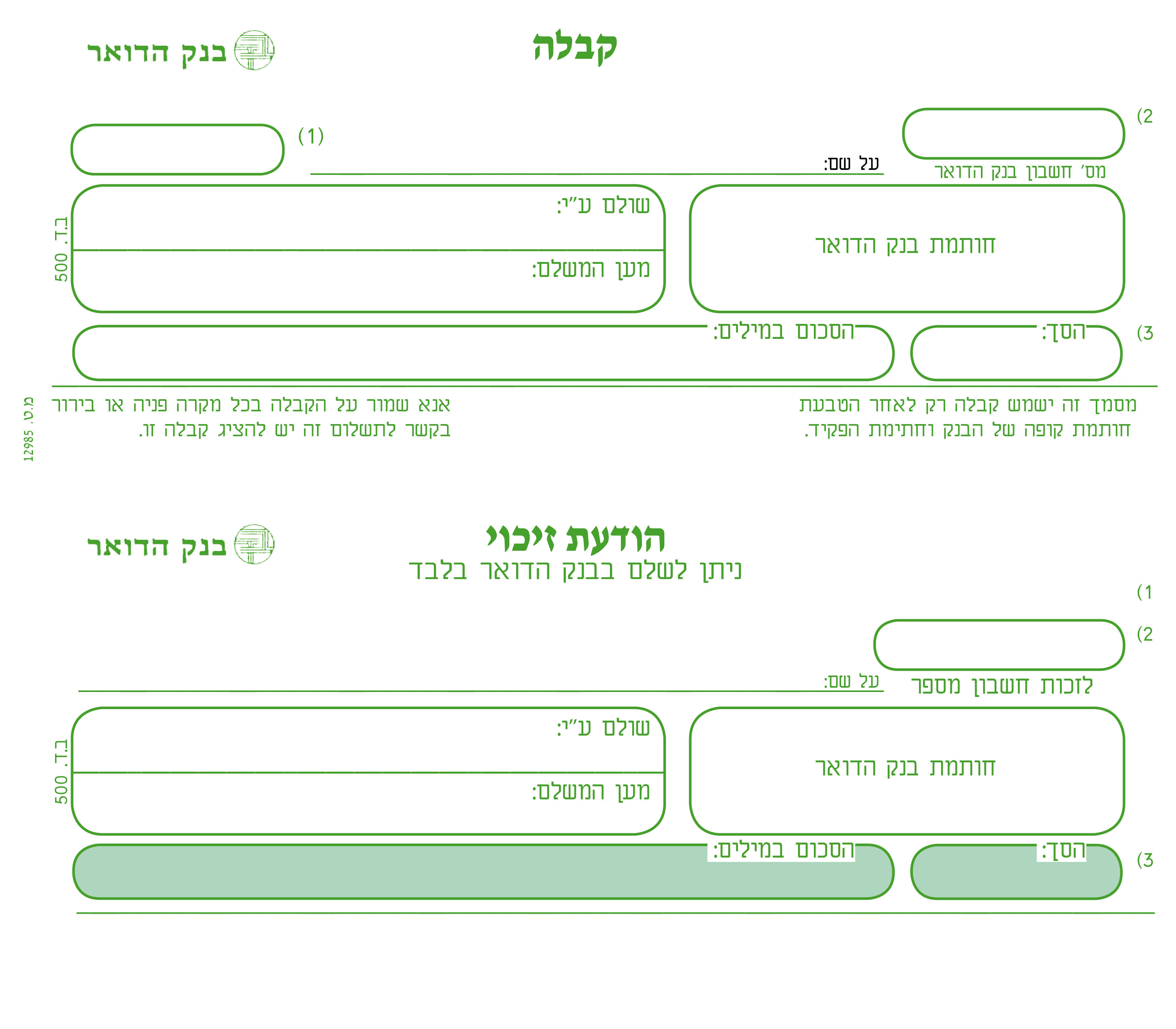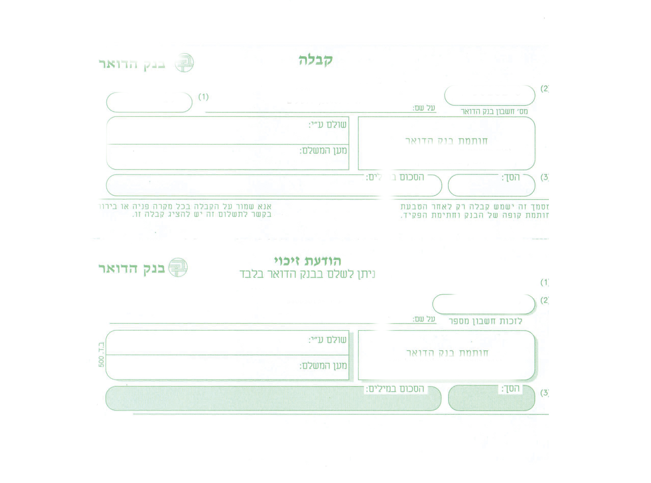 כללי הודעת זיכוי של בנק הדואר