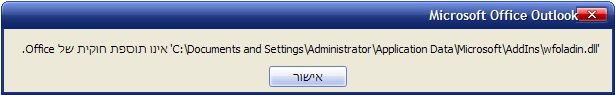הודעת שגיאה באאוטלוק