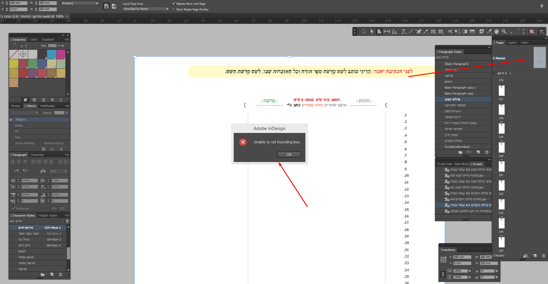 על כל דפי המסמך, ההודעה שמופיעה - unable to set bounding box