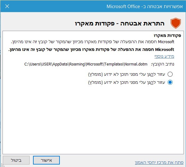 לאחרונה כל פעם שאני פותח מסמך עולה לי הודעה הבא, וזה חוסם לי האפשרויות של המאקרו.