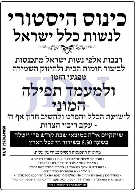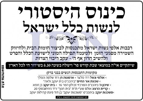 כל ציבור הנשים יראה וישמע את ההרצאות בכל הארץ באותו זמן במעגל סגור.