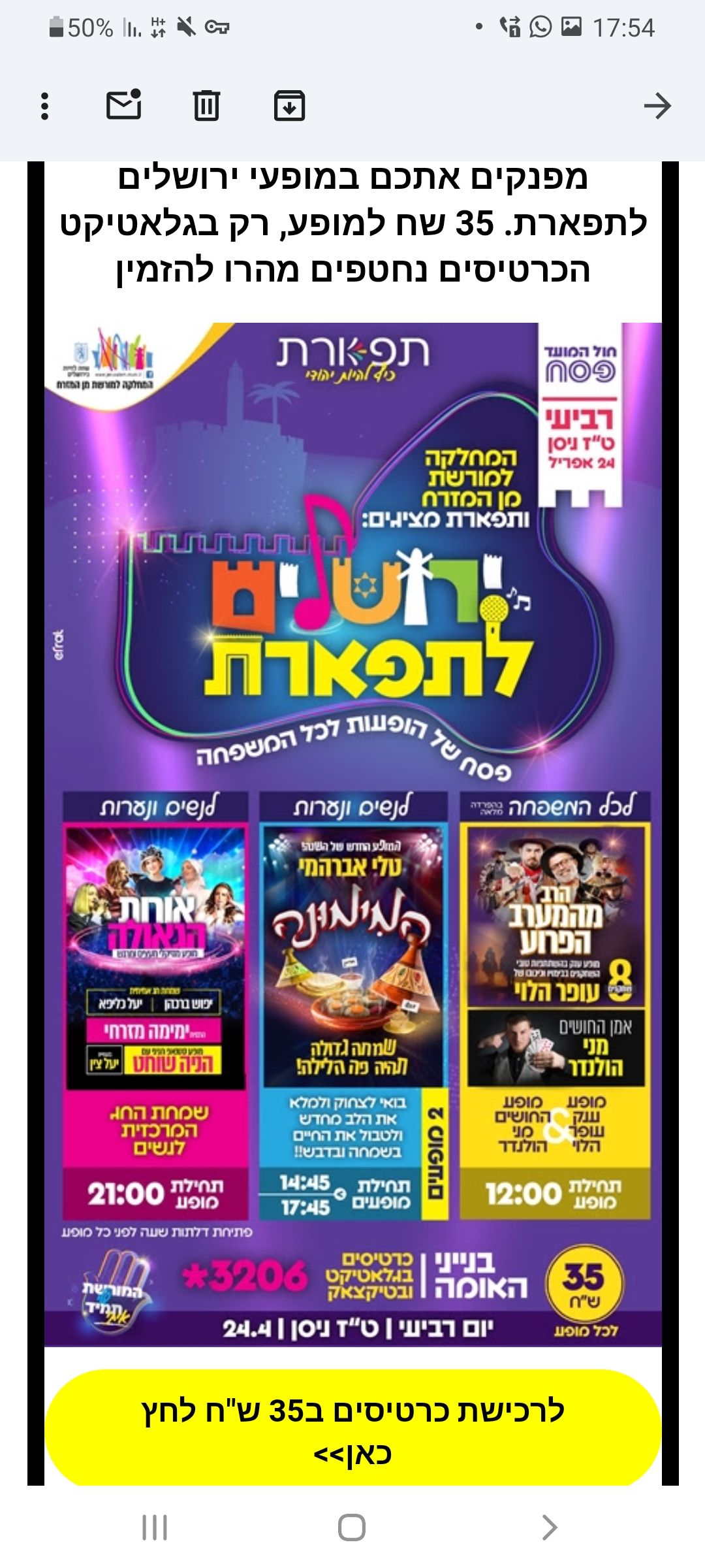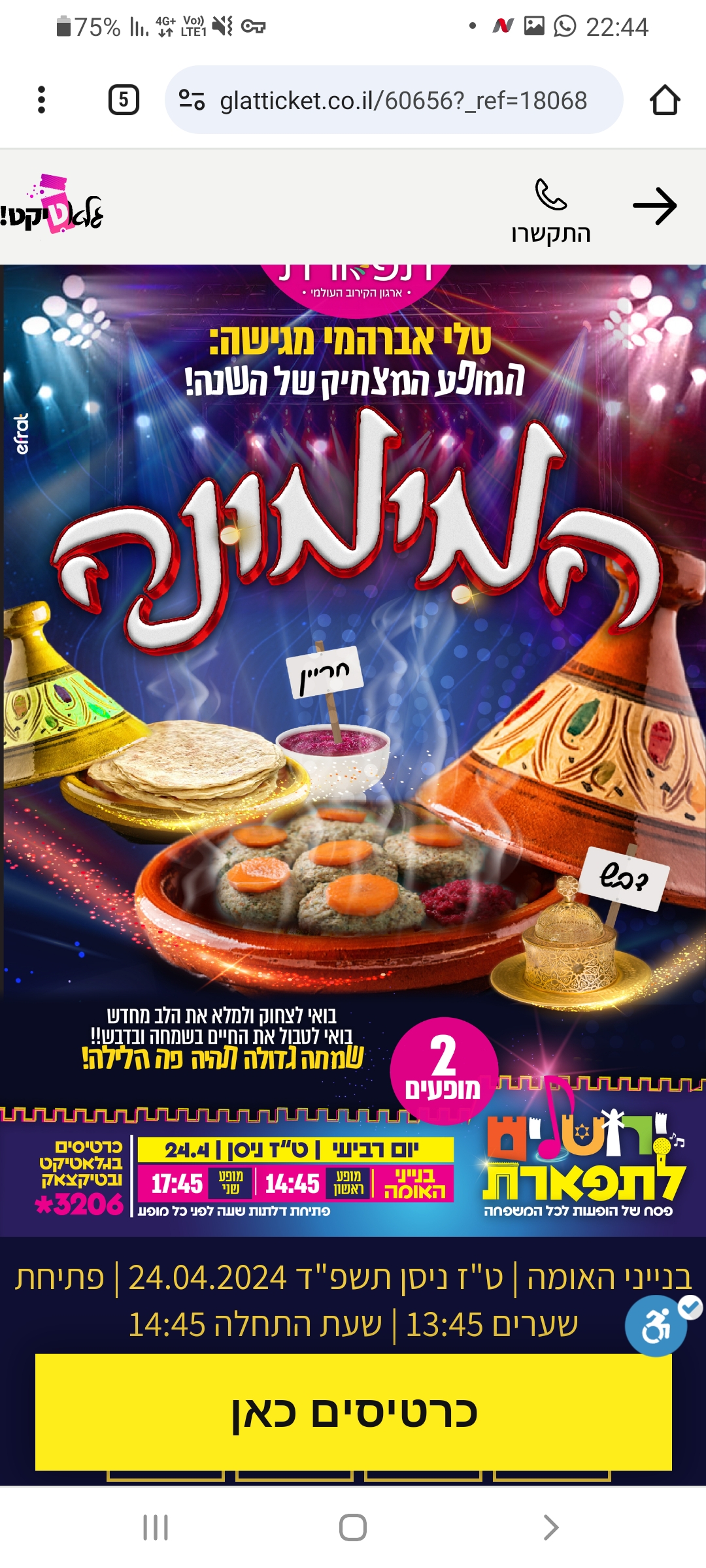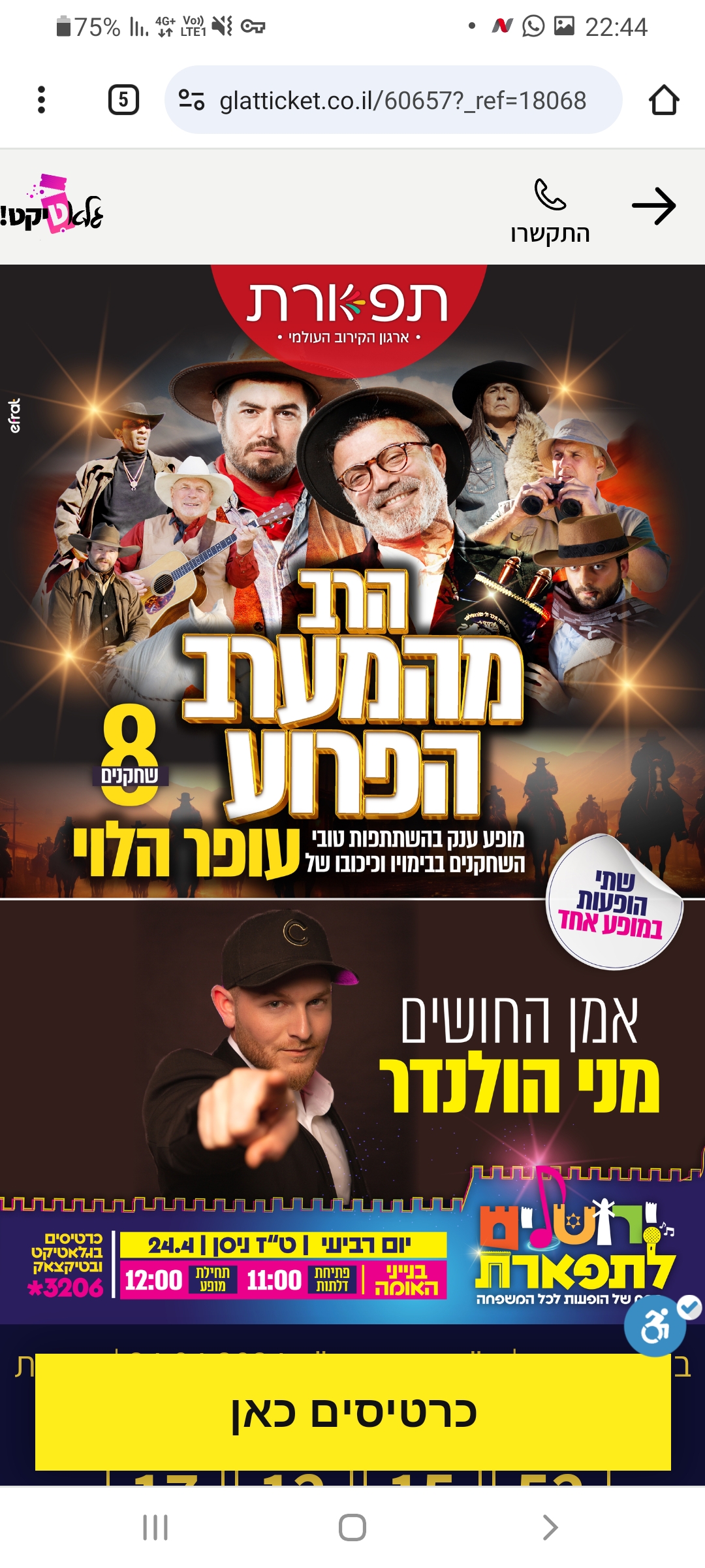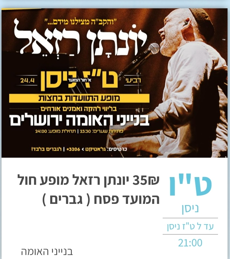 מופעי תרבות הופעות בין הזמנים פסח תשפ"ד 2024
