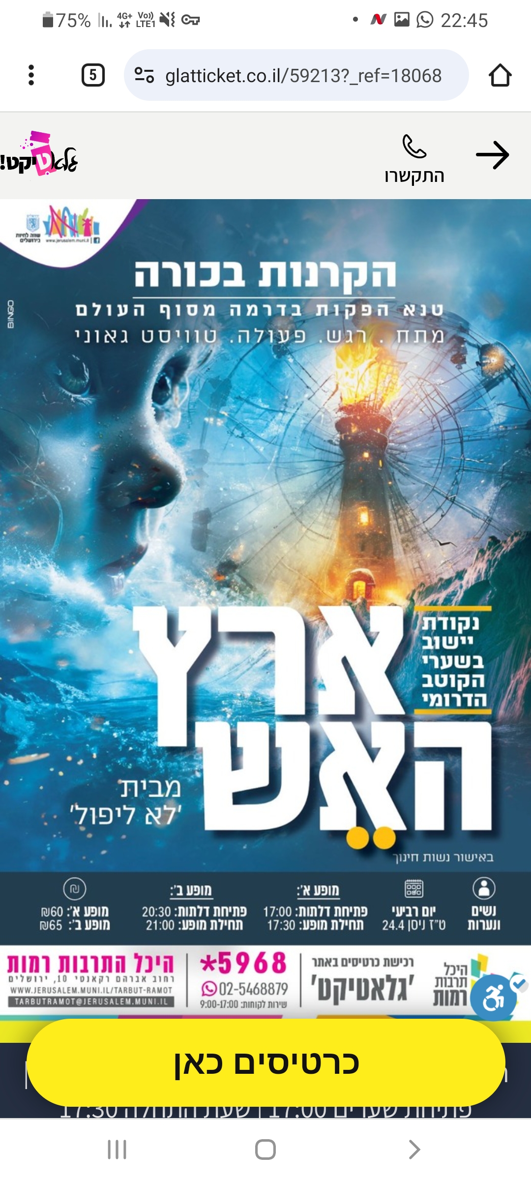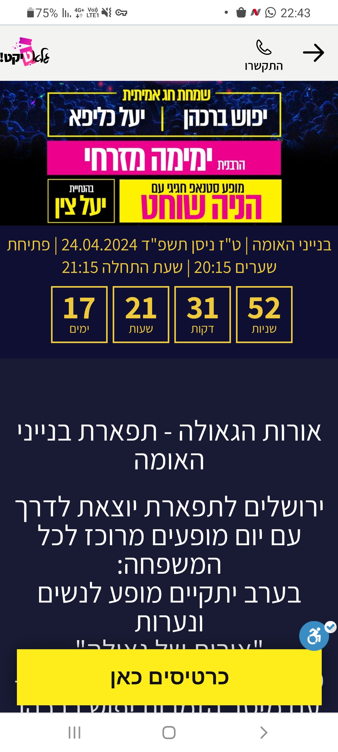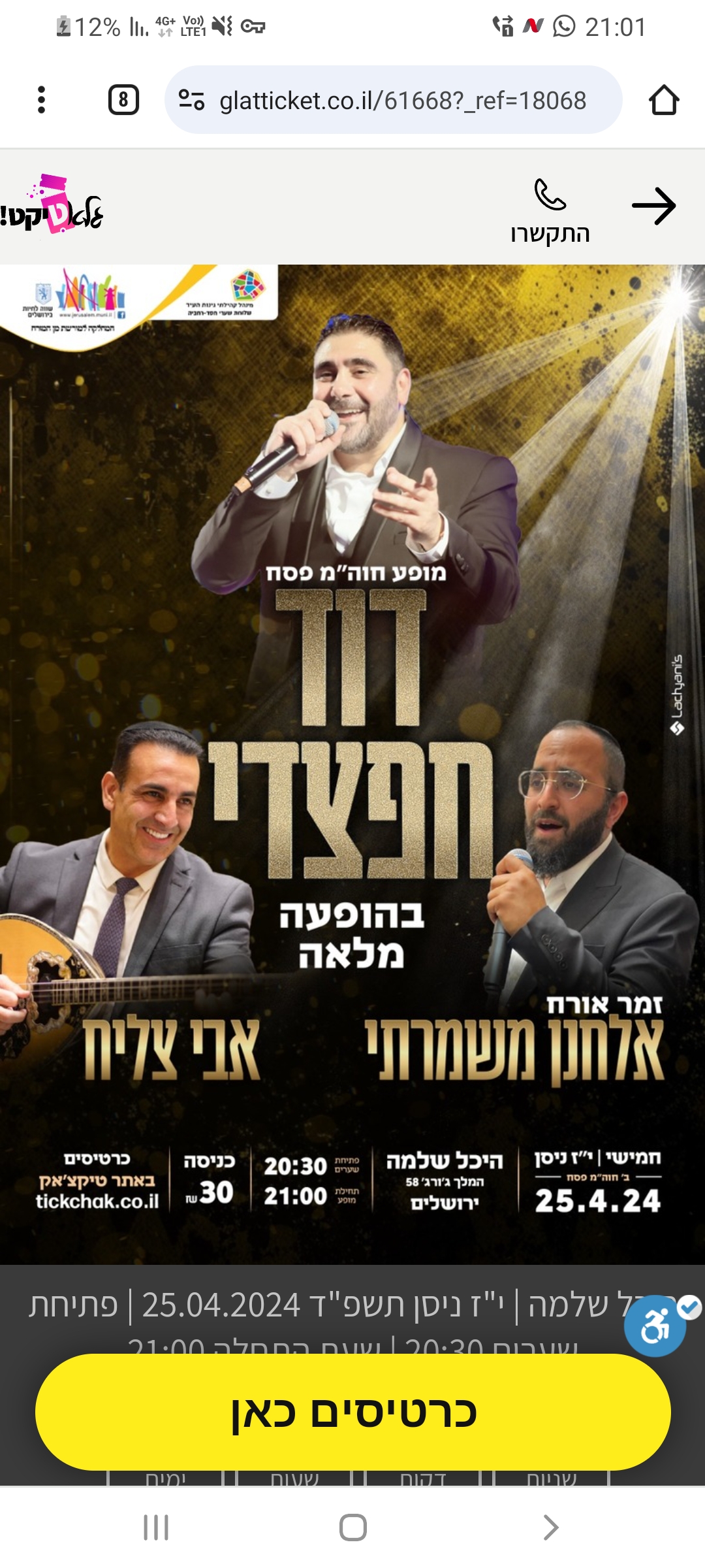 מופעי תרבות הופעות בין הזמנים פסח תשפ"ד 2024