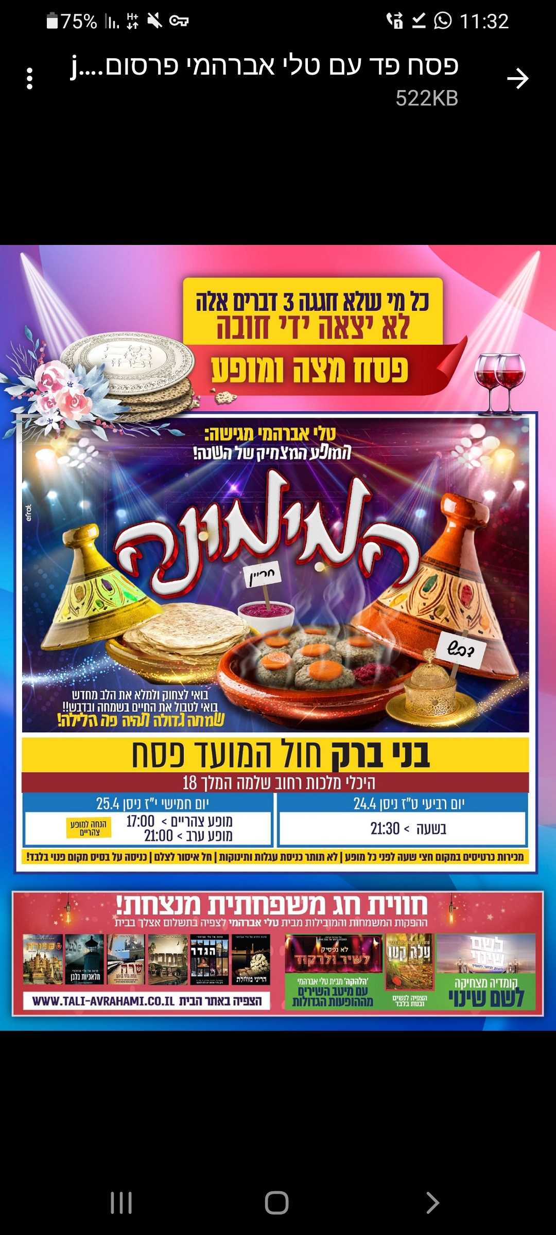 לכל מי שיש מידע על הופעות בבין הזמנים של חג הפסח הקרוב , אשמח שיעלה לכאן את הפרסומים השונים של הופעות
