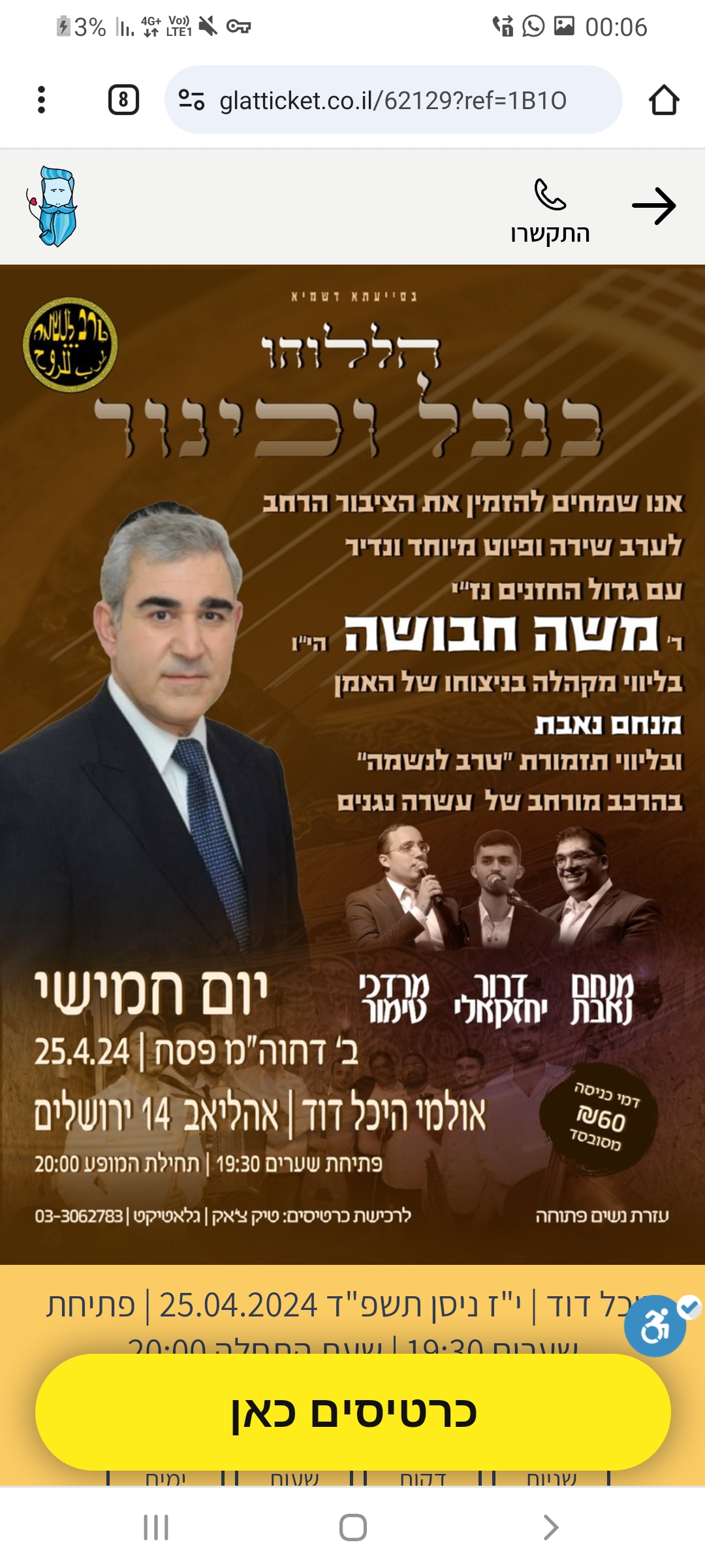 מופעי תרבות הופעות בין הזמנים פסח תשפ"ד 2024