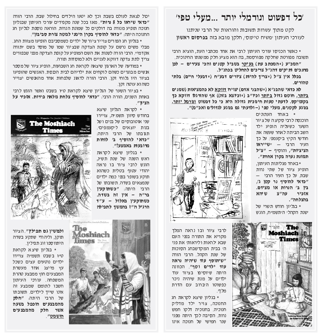 לפי בקשת מספר חברים בפורום, אני מעלה מספר מענות של הרבי לעורכי עיתון חודשים בשם 'משיח טיימס'.