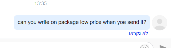 כתבתי למוכר אם הוא יכול לכתוב על האריזה מחיר פחות מ75 דולר בשביל שאני לא אשלם מס