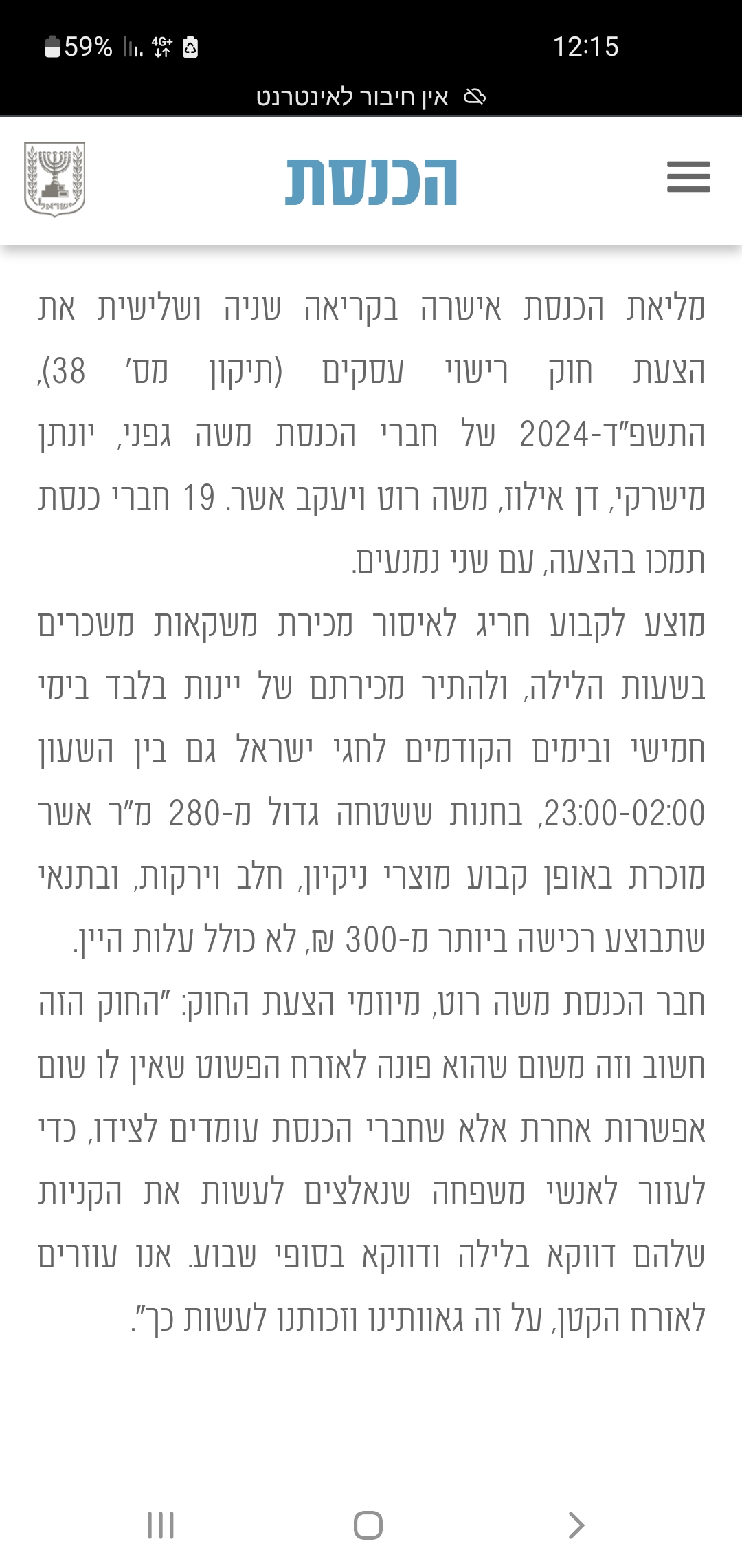 דרוש מידע החוק למכירת יין לקידוש בליל שישי אחרי 23:00 אושר סופית???