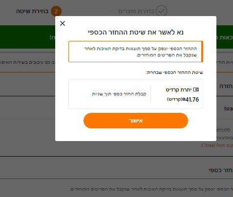 כך עשיתי ב-4 הזמנות והחזרתי כ-300₪......