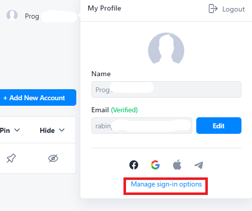 כנסו לפרופיל ובחרו 'Manage sign-in options'