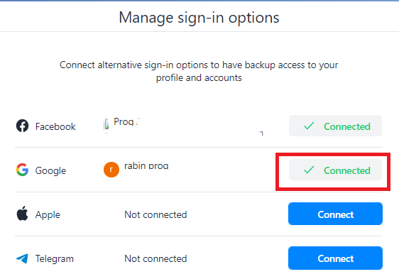 בחלון שנפתח לחצו על 'Connect' על חשבון גוגל ותתחברו לחשבון המתאים.
