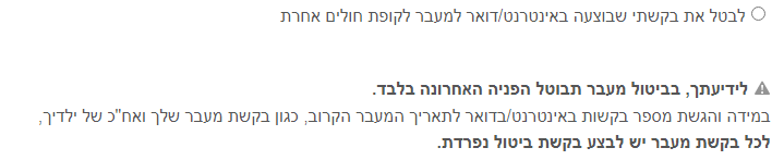 עכשיו עבר זמן ואני חוזרת בי ולכן אני אגיש כנראה בקשה לביטול מעבר דרך האתר