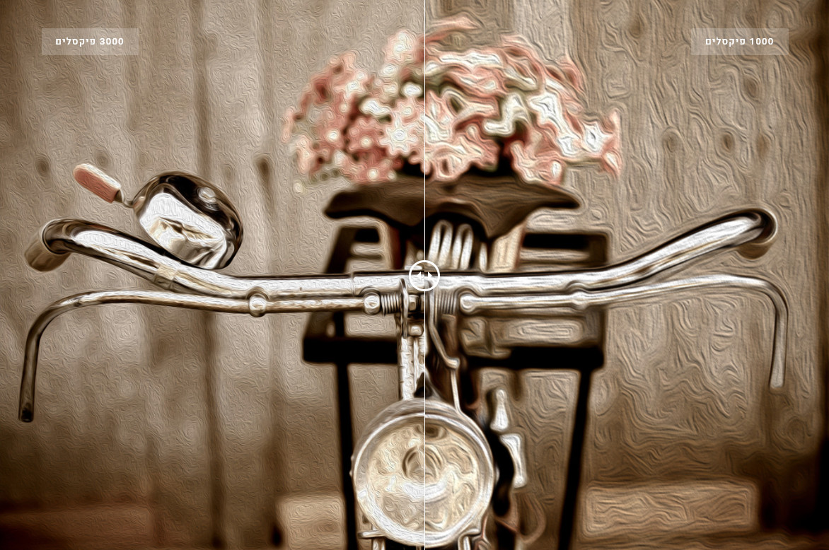 אז אם יש לכם תמונה קטנה, והיא נמרחת לכם מידי עם אפקט ה oil paint (או כל אפקט אחר). פשוט תגדילו את כמות הפיקסלים והכל יסתדר.