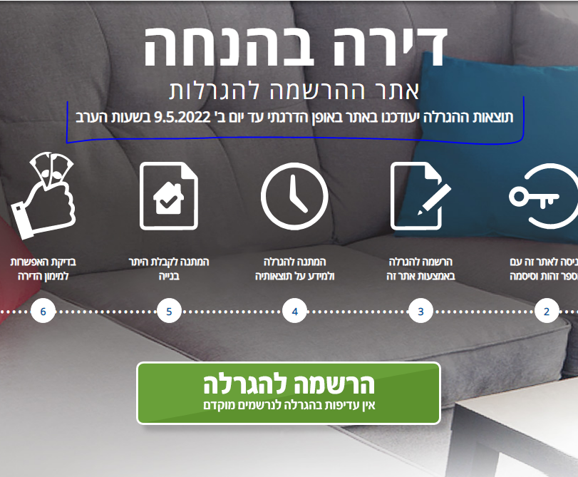 זה מה שקיבלת?אנו מודים לך על השתתפותך בהגרלות ״דירה בהנחה״, אשר נסגרה להרשמה ביום 10/04/2022.
