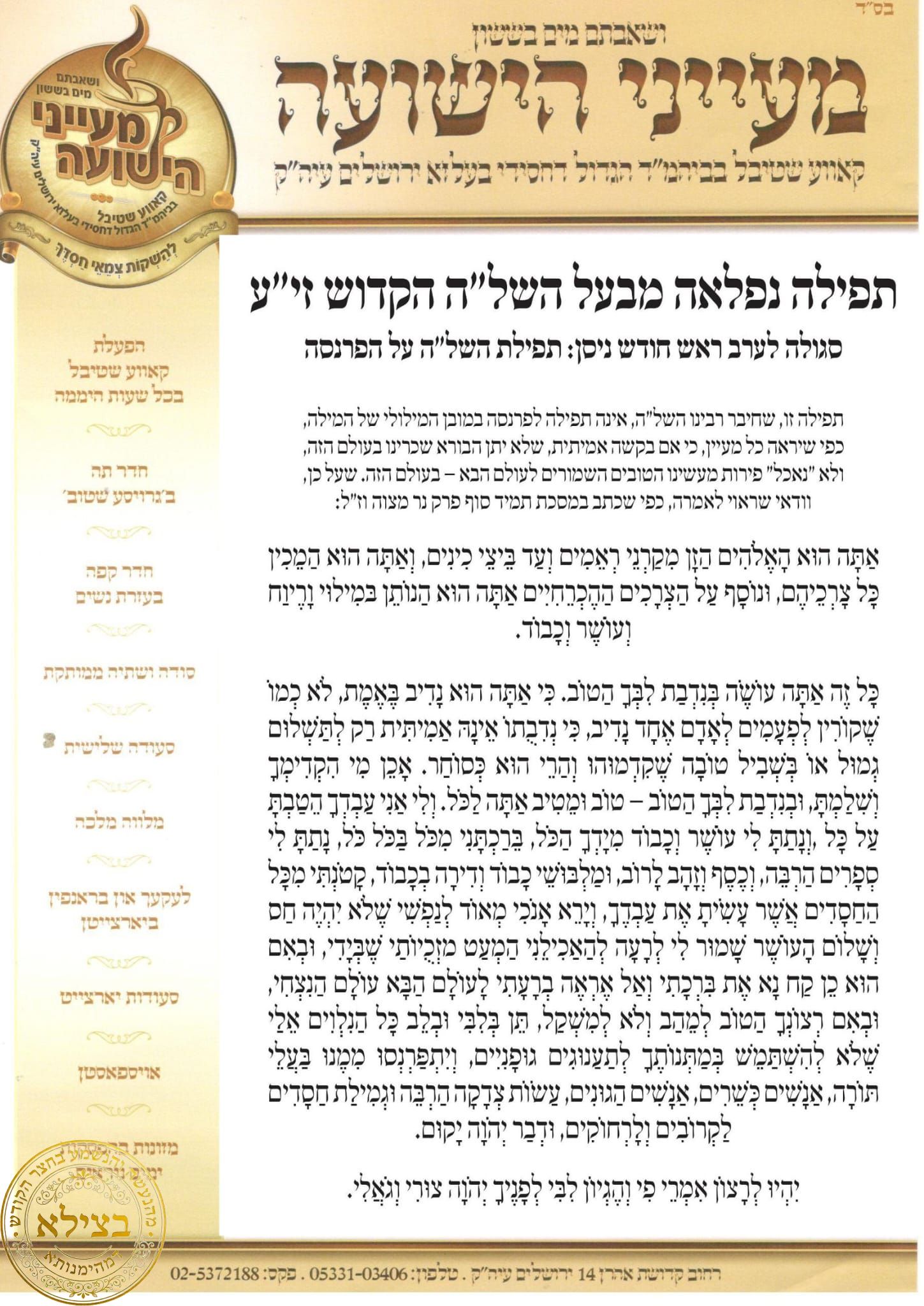מידע שימושי היום!!! תפילת השל"ה ערב ראש חודש ניסן!