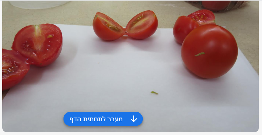 ביקשו להעביר לזיכוי הרבים: היזהרו מעגבניות שרי!!! בעגבניות שרי מיבוא חו''ל (כמו מה שמוכרים במשנת יוסף), נמצאו תולעים חיים ושלמים מהלכים בתוך העגבניות! כן, גם בעגבניות שנראות שלמות ועסיסיות! ידע הציבור ויזהר: "וְלַמַּזְהִיר וְלַנִּזְהָר. שְׁלוֹמִים תֵּן כְּמֵי נָהָר"