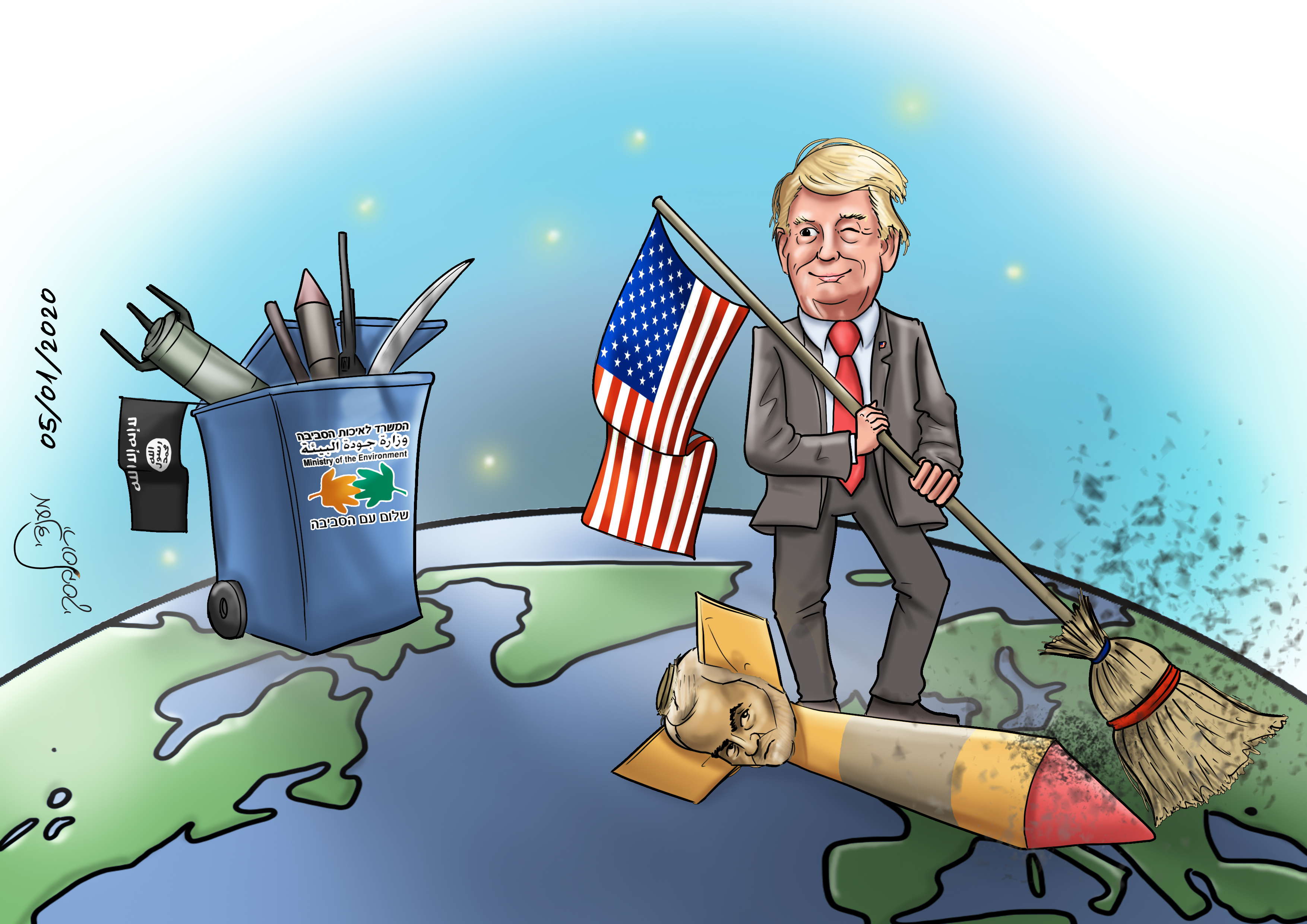 לא תמיד עבודת ניקיון מסתכמת בדלי ומקל ספונג'ה. תראו איך אפשר לערב בה פוליטיקה בקלי קלות. (ותודה למענדי ירוסלבסקי האמן!)