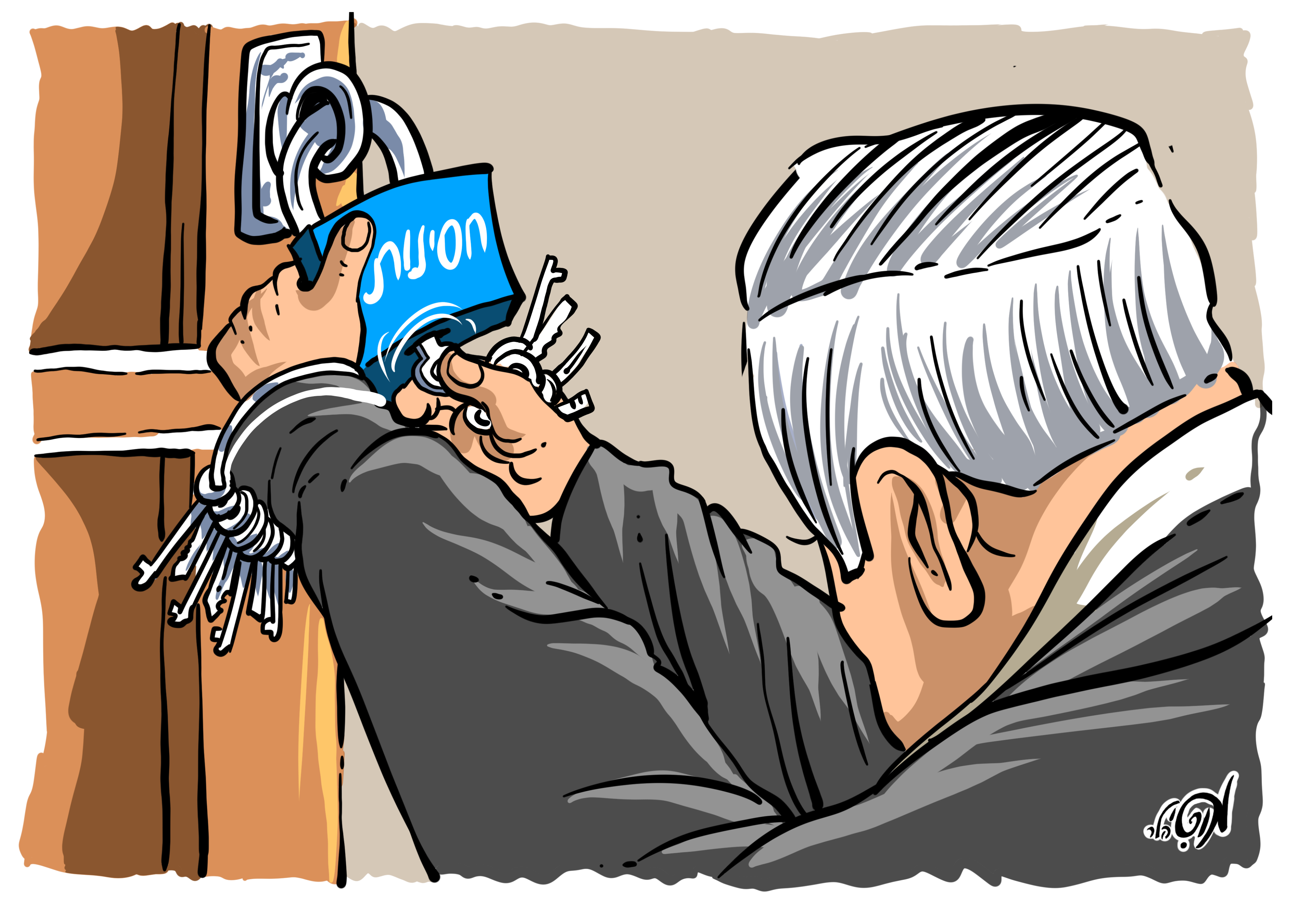כשהזמן מתקתק לא נישאר אלא לנסות את כל המפתחות כדי להיחלץ מהברוך... (את הקריקטורה המדהימה הזו הגיש לנו מוטי הלר המוכשר. פורסמה ב'המודיע'.)