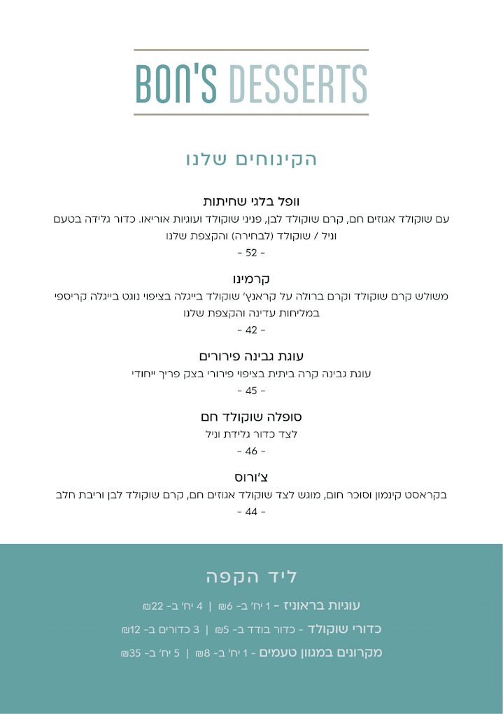 יש את בון קפה מול גורנו שיש שם אוכל נדיר[בפרט סלט קריספי בטטה]