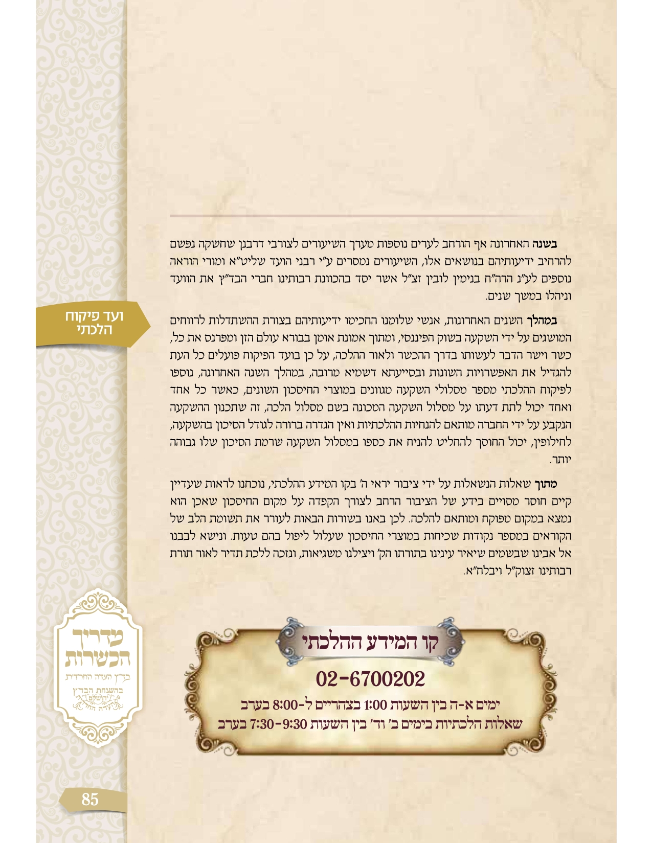 דרוש מידע היכן ניתן לקרוא את דעתם העדכנית של בד"ץ העדה"ח בכל נושא ההשקעות?