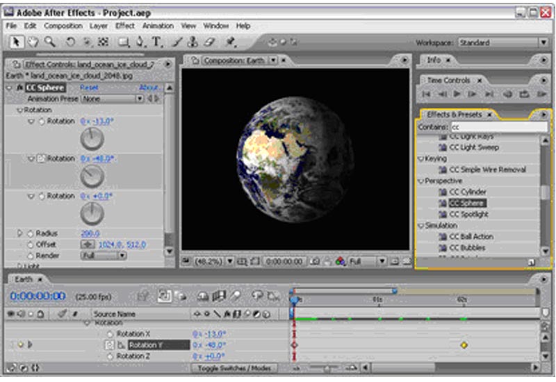 כדור הארץ המבוססת על שימוש בטקסטורה מהאתר שלNASA הכלול בתוכנה. ואפקט בשם CC Sphere
