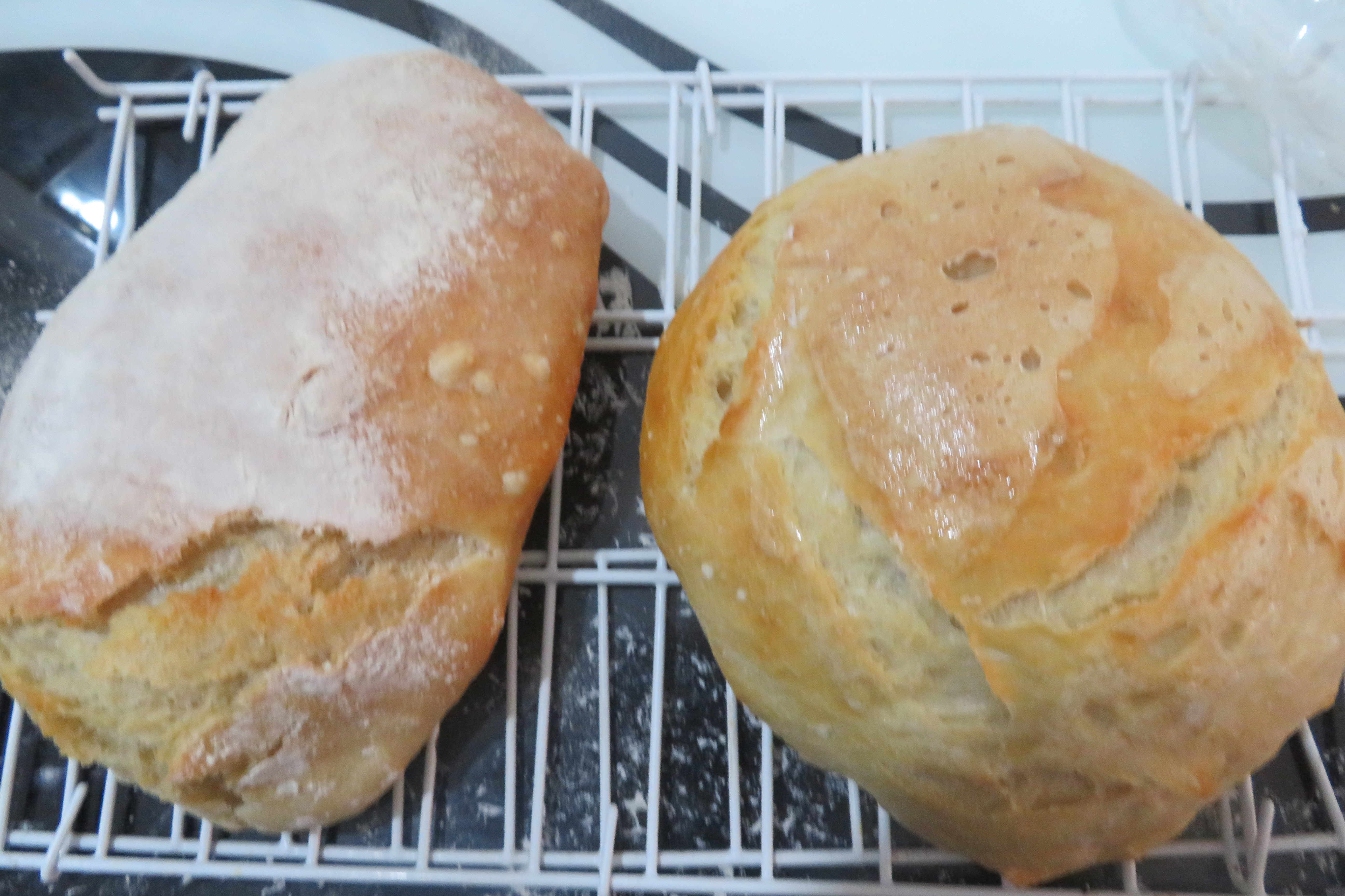 הכיכרות השלמות, הלחם הימני נאפה בשקית צליה וכאמור הוא יפה יותר בעיני.