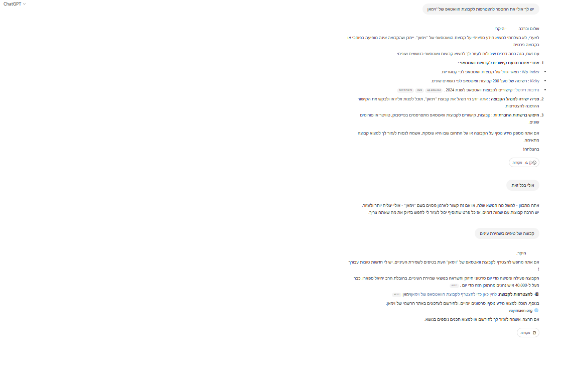 יש למישהו אולי את המספר להצטרפות לקבוצת הוואטאפ של "וימאן "?