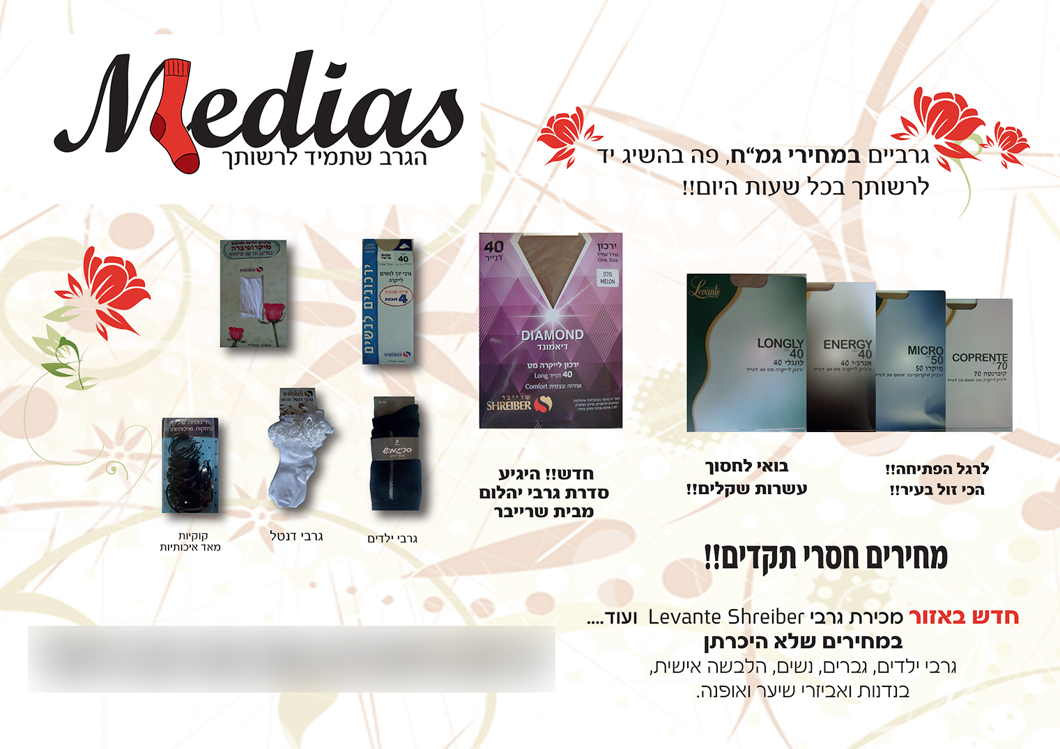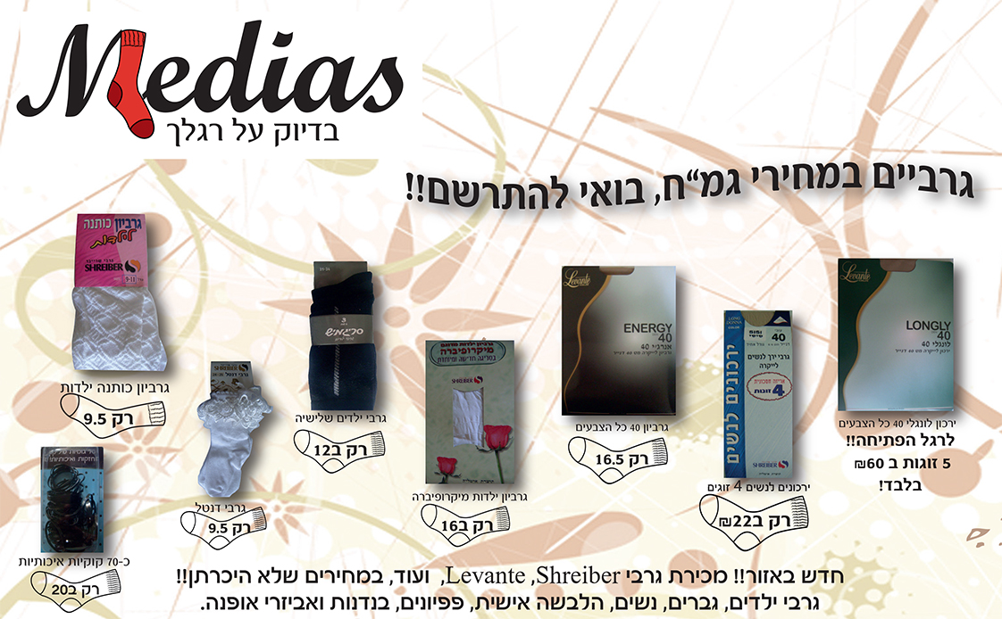העיצוב הגלי של "גרביים במחירי גמ"ח" מזכיר את הוורדארט של וורד. לא כדאי.