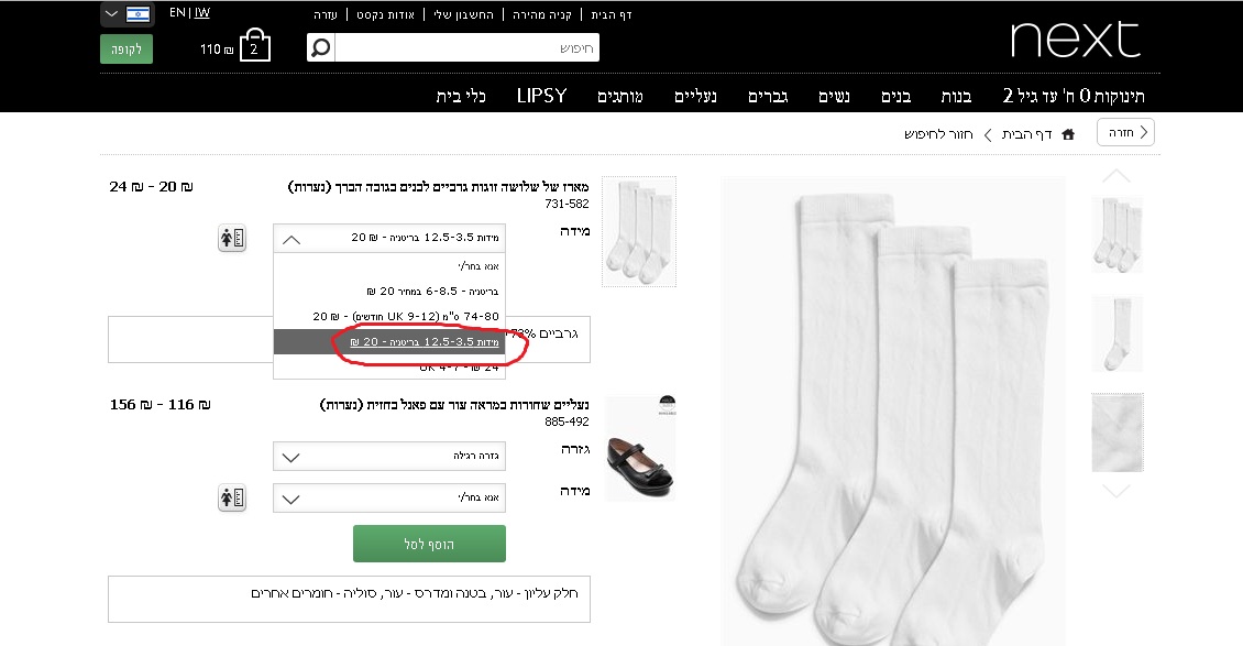 נכתב ע"י ריקיה;2517298:המידות של הגרביים כמו הנעליים