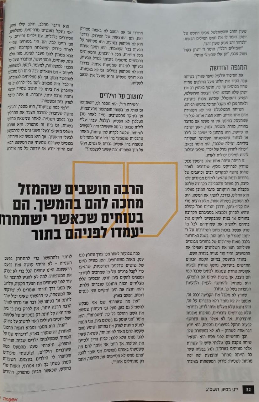 דרוש מידע המלצת קריאה! כתבה על גירושין/נישואים שניים עם יונתן שווארץ - מגזין משפחה