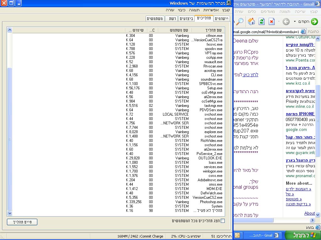 עכשיו ליד כל תהליך יהיה כתוב כמה זיכרון הוא לוקח. תחפשי את השודד...:)