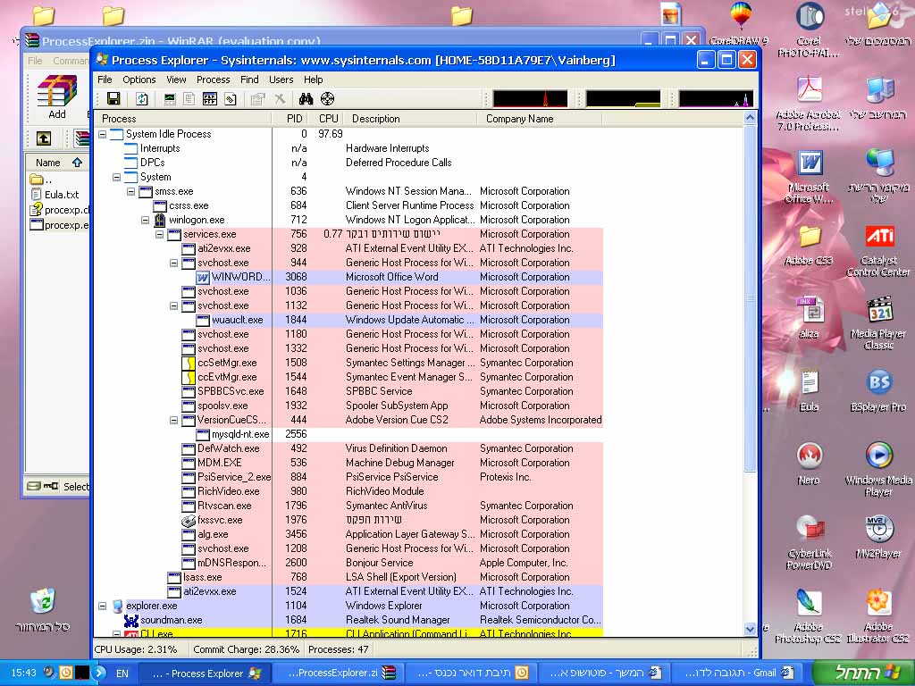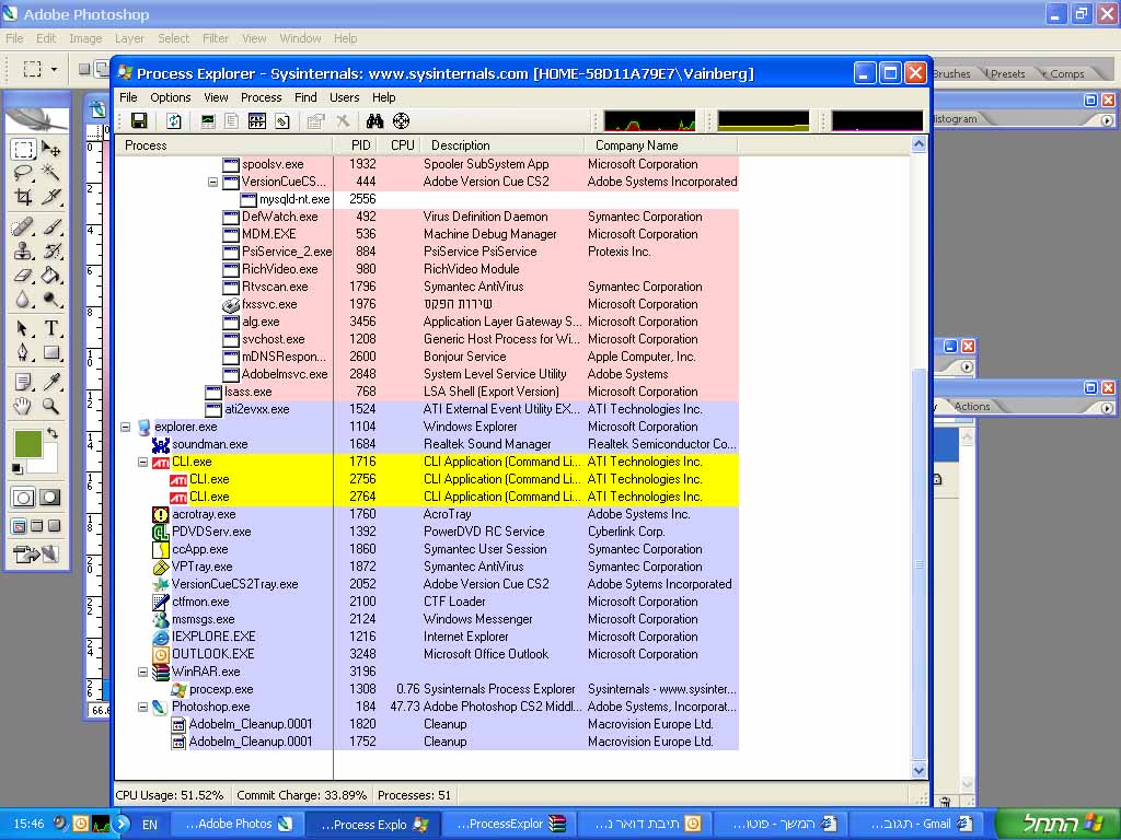 אגב, במקרה כעת מחכה על המסך גם תוכנת פוטושופ CS3 (ניסיון) להורדה - כדי לראות אם זה כן יעבוד לי. אז אם תראו את זה שם במנהל המשימות - לא זו הבעיה כי הבעיה קיימת הרבה לפני זה.