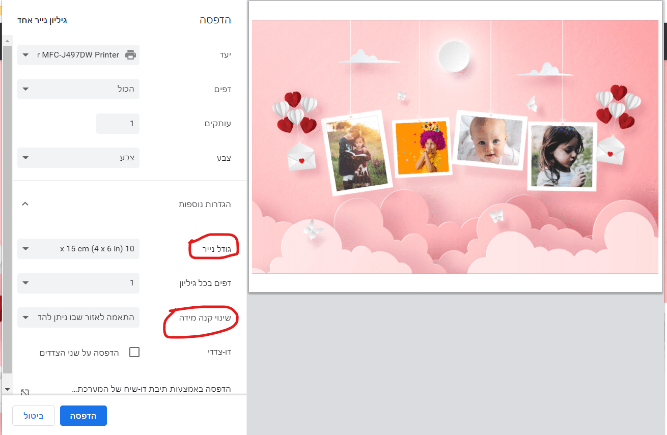 בהדפסה את משנה או את גודל הנייר או שינוי קנה מידה (את מורידה את האחוזים נגיד ל-50 וכו')