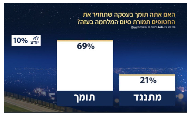 אבו עלי אקספרס ערך סקר בעניין עסקה לשחרור החטופים ומנגד- מנו גבע בערוץ 12 ערך ג"כ: