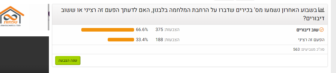 בשבוע האחרון נשמעו מס' בכירים שדברו על הרחבת המלחמה בלבנון, האם לדעתך הפעם זה רציני או ששוב דיבורים?