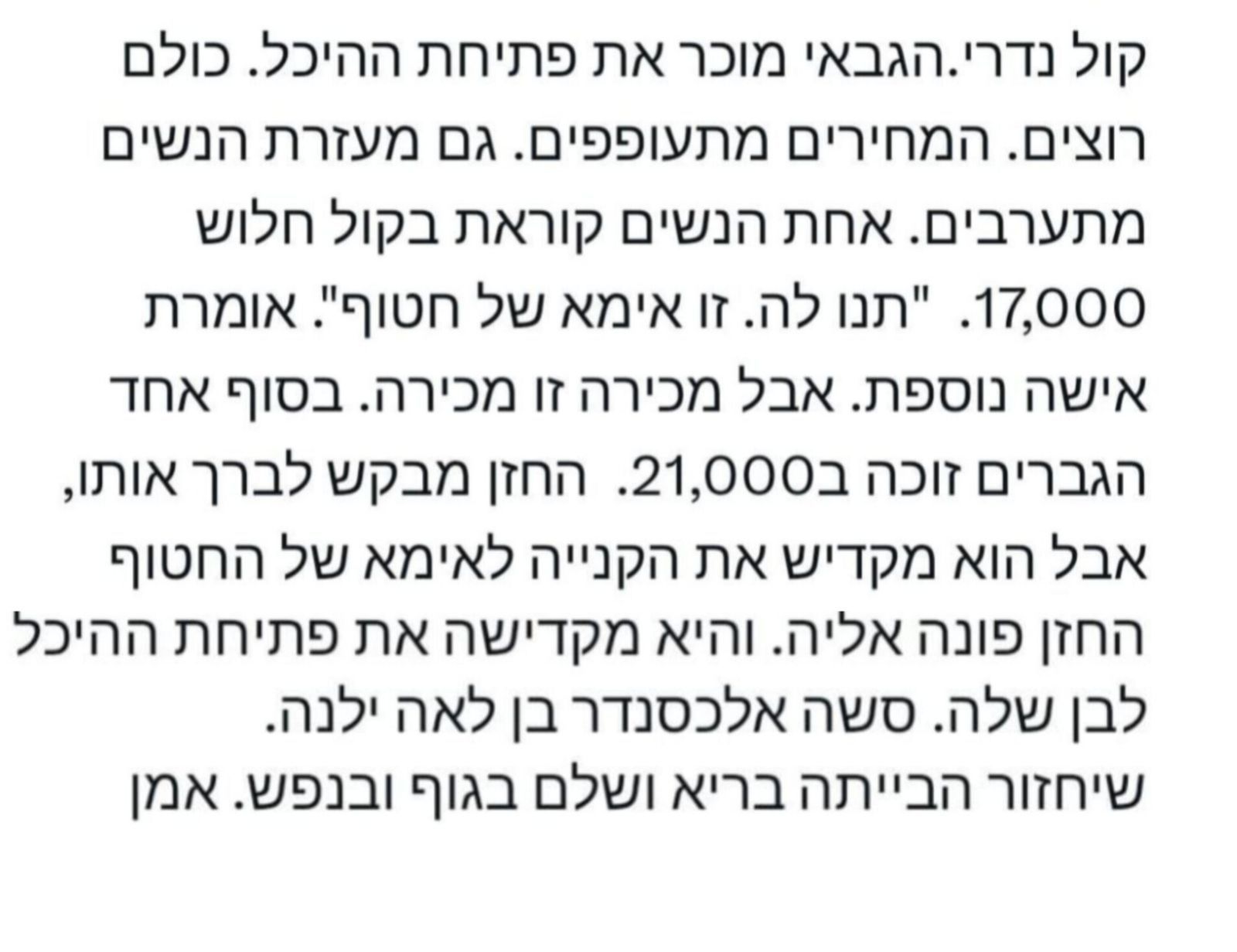 זה פחות או יותר המסלול שאותו עוברות בחודשים אלו מאות משפחות מאנ"ש שכל מה שהם רצו זה לחתן את הילדים בכבוד וכעת הם מרוסקים לחלוטין וייקח להם שנים רבות אם בכלל כדי להתאושש מהתהום הכלכלית שהם הוכנסו אליה בידי משווק פלוני.
