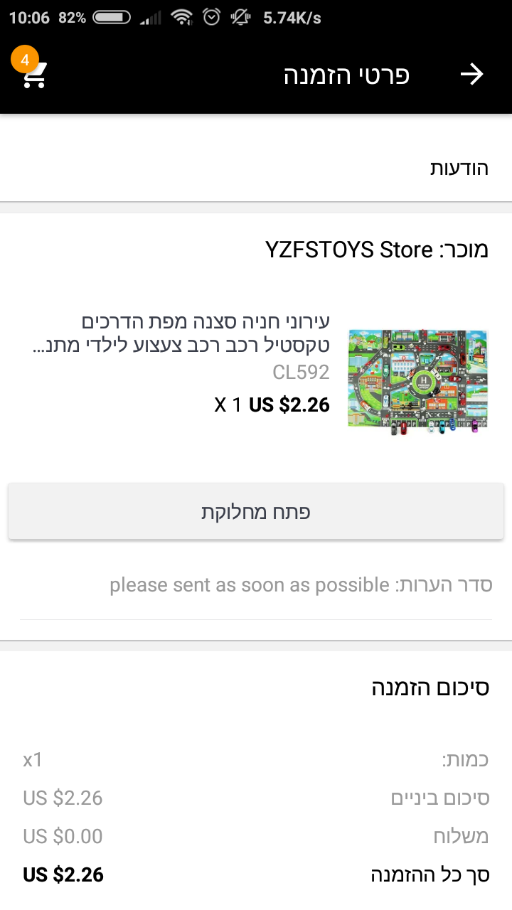 מי יכולה להסביר לי היכן אני פותחת סכסוך איפה זה נמצא באתר של אלי אקספרס רכשתי 4 חצאיות הגיע לי רק אחת כתבתי להם באיזה שום מקום הם בכלל לא הגיבו אם אפשר לעלות צילום מסך ולהראות היכן יעזור לי מאד תודה