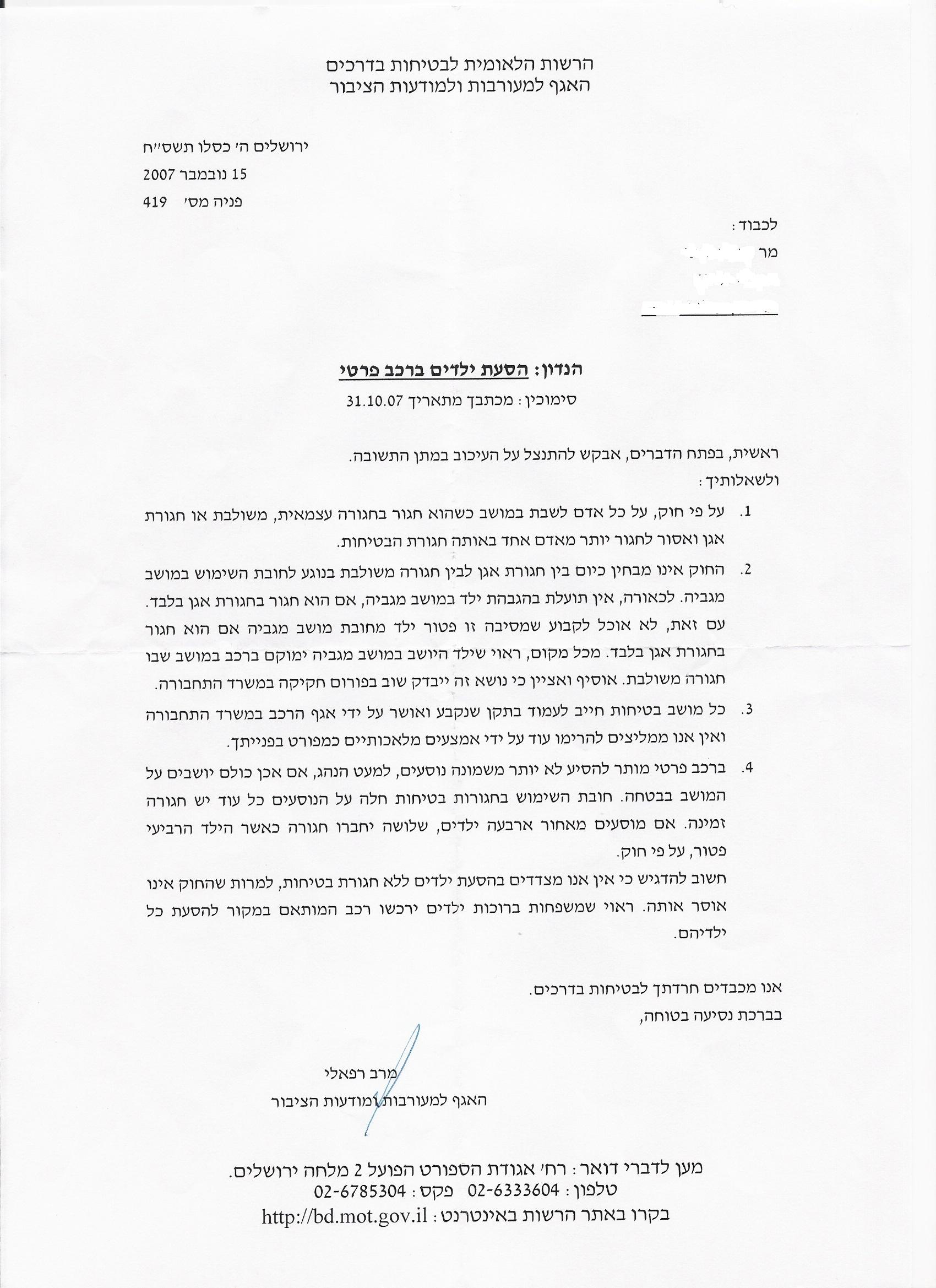 חבל שלא עושים חוזר מסודר בדיוק את כל הכללים והחוקים שבעלי הרכבים צריכים לדעת. כאשר קניתי רכב נסיתי לברר כמה חוקים לגבי בוסטרים וכד' התגלגלתי מהמשטרה לבטרם למשרד התחבורה וכוד' ויצאתי בלי מענה גם באנטרנט לא הצלחתי לקבל תשובה. מאיפה למשל אני אמורה לדעת שבחודש אב שינו את החוק נכון להיום אני לא בכנסת. הגיע הזמן שיוציאו חוזר מסודר קריא ונגיש ל"פשוטי העם" ונפסיק לתסתבך בכל פעם מה אסור ומה מותר.