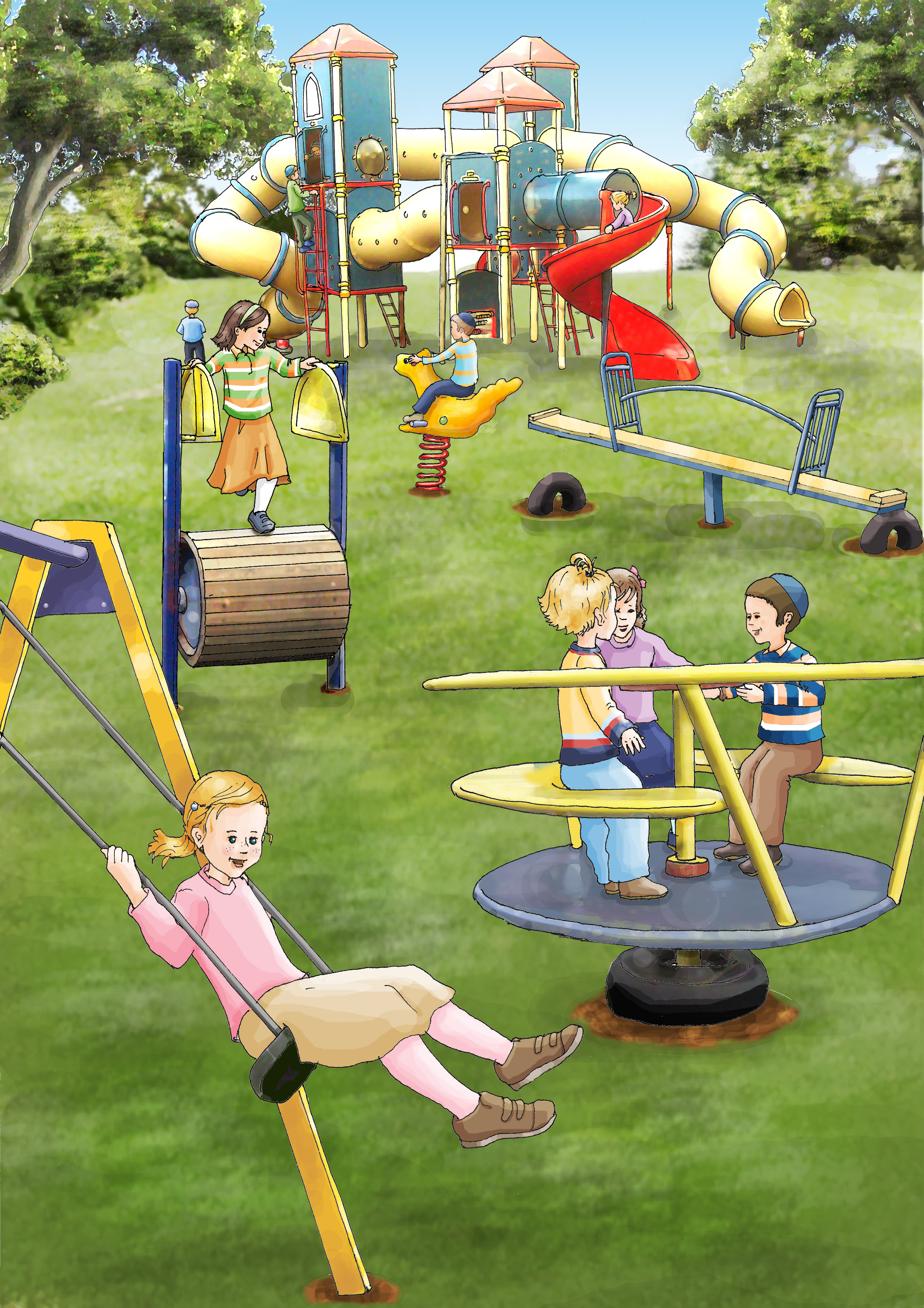(הדבר היחיד שהפריע לי למושלמות המדהימה, בכמה מקומות יש צל שנעשה על ידי מברשת בעלת קצוות קשים, בזמן שעדיף היה להשתמש במברשת רכה: לדוג', מתחת לרגלי הילד בציור הראשון, מתחת לנדנדה בציור השני)