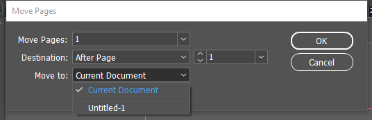 וב move page יש לך אופציה לבחירה לאן להעביר למסמך הנוכחי או למסמך אחר.