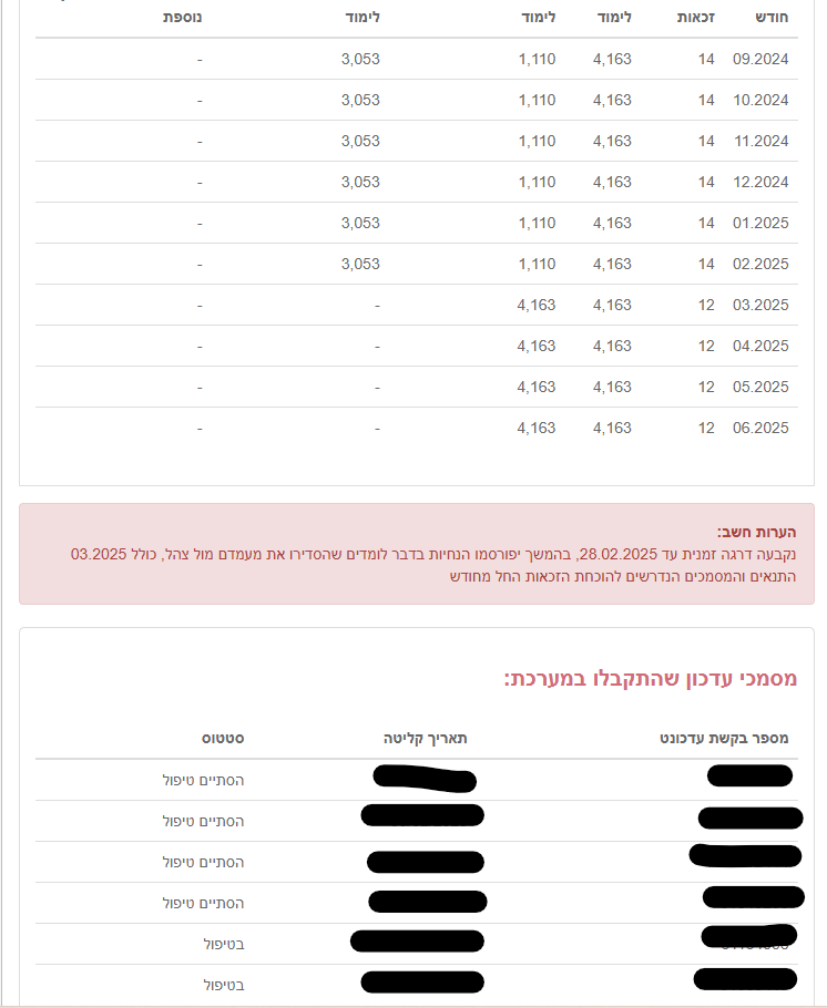 אבל מתחילת שנת הלימודים הנוכחית ירדו ביותר מחצי ואני רוצה להגיש ערעור שיחשבו לפי מצב נוכחי