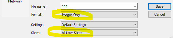 לבחור כמו המסומן. ובתיקיה שנבחרה כל סלייס (חתיכה שסומנה במסמך) יהיה קובץ נפרד.
