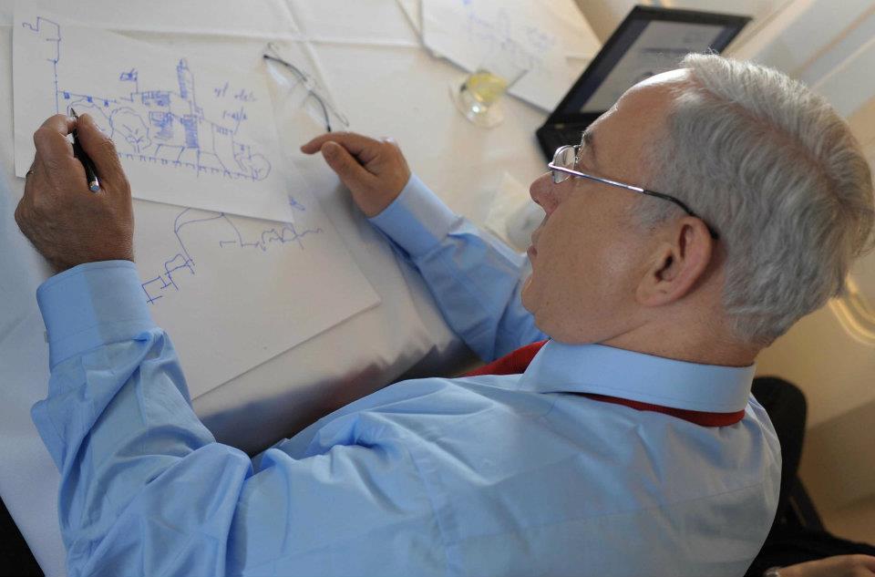 אח"כ גילה את הטעות ובסקיצה האחרונה הוא הפך את מגדלי עזריאלי למגדל דוד