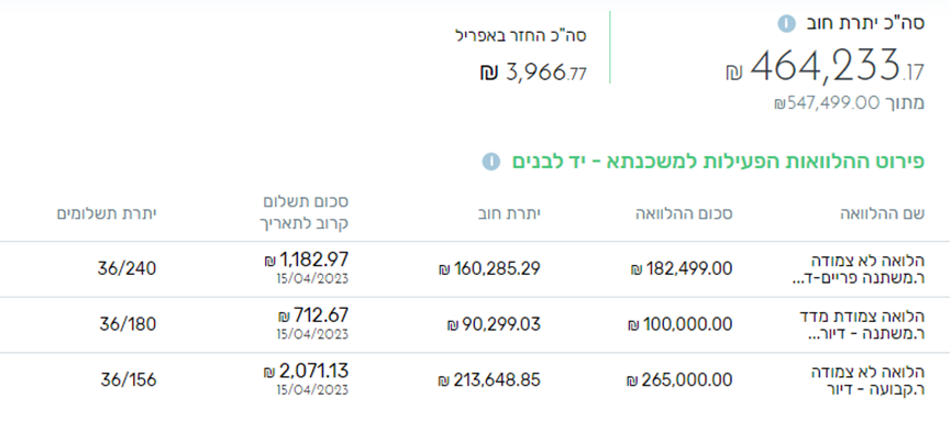 יש הלוואה נוספת שנלקחה במקביל לצורך שיפוץ: