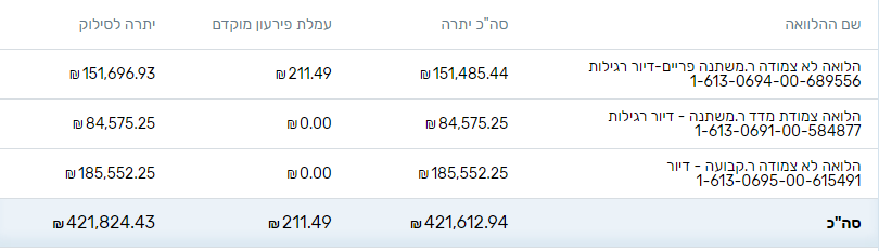 מעבר למשכנתא יש הלוואה נוספת לשיפוץ בריבית פריים של 5% (P-1) עם יתרה של 44K.